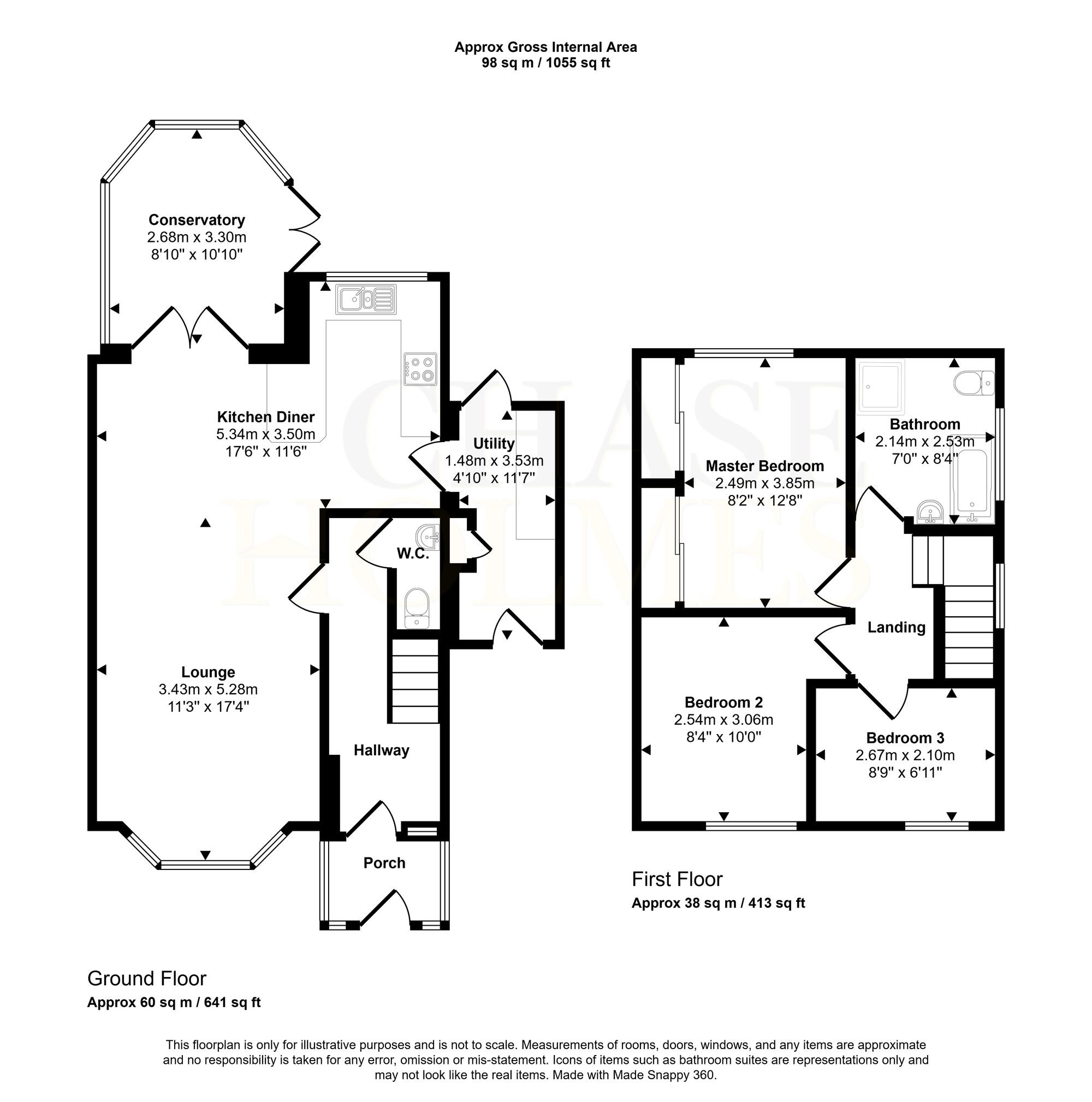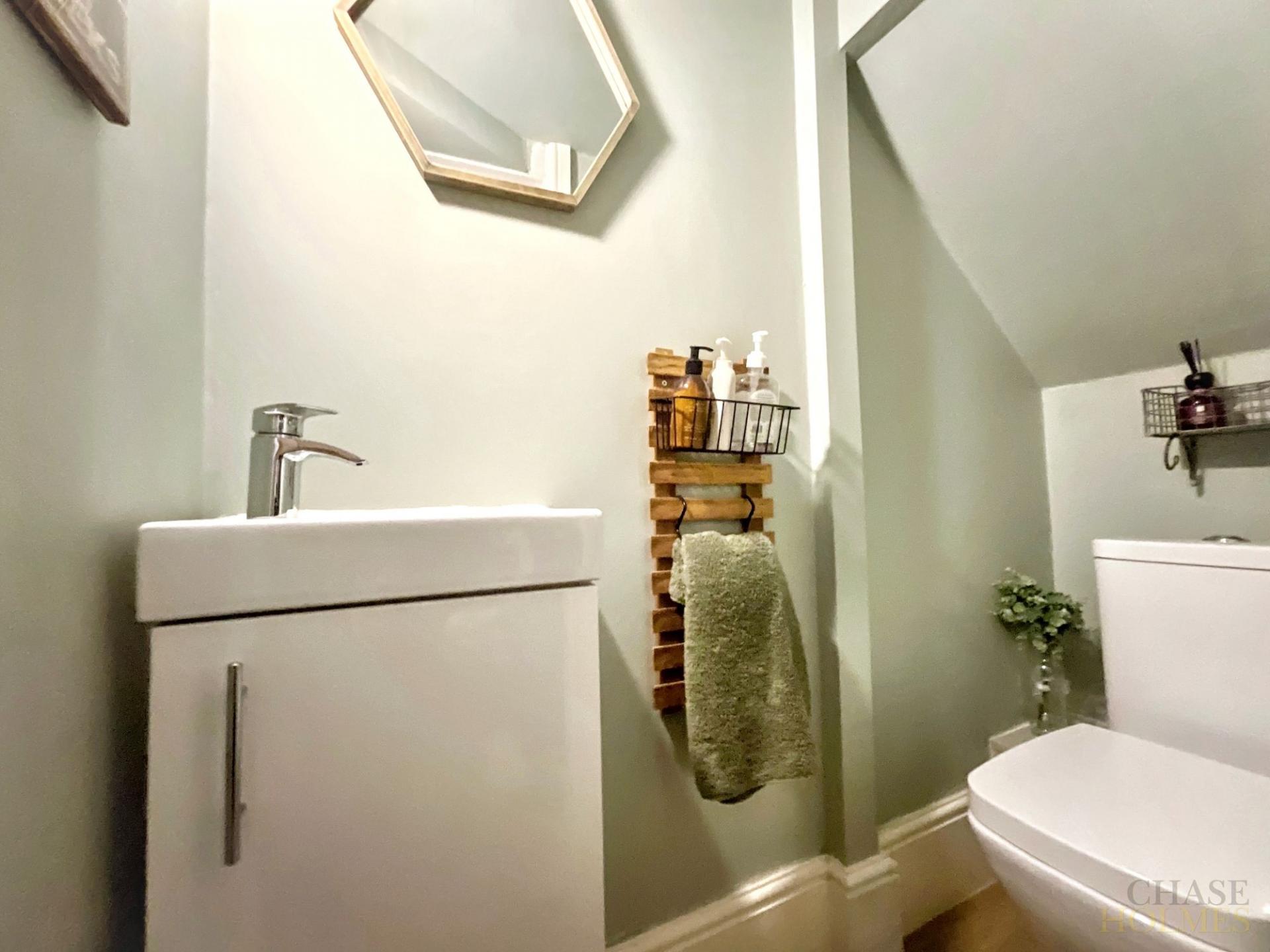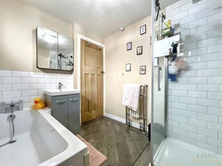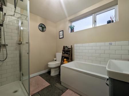 A generous conservatory at the rear of the property offers direct access to the garden, creating a versatile space for relaxing or hosting guests. Upstairs, you will find three well-proportioned bedrooms, each tastefully decorated and filled with natural light. The stylish family bathroom features both a walk-in shower and a separate bath, while a convenient downstairs WC adds to the practicality of the home.