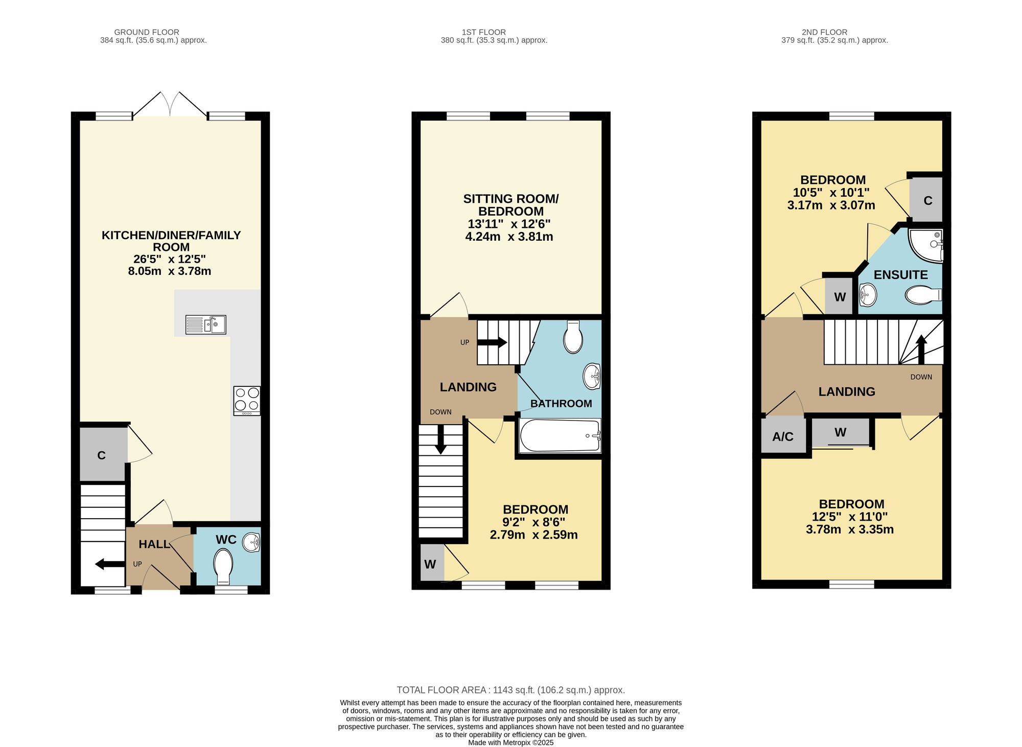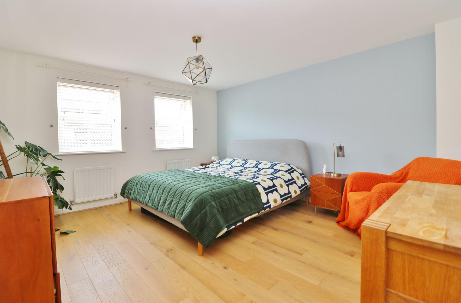 On the top floor there are two more double bedrooms, the master of which has fitted storage, a window to the rear and an en-suite with a corner shower cubicle, wash hand basin and WC. The other bedroom has a window to the front and a fitted wardrobe.