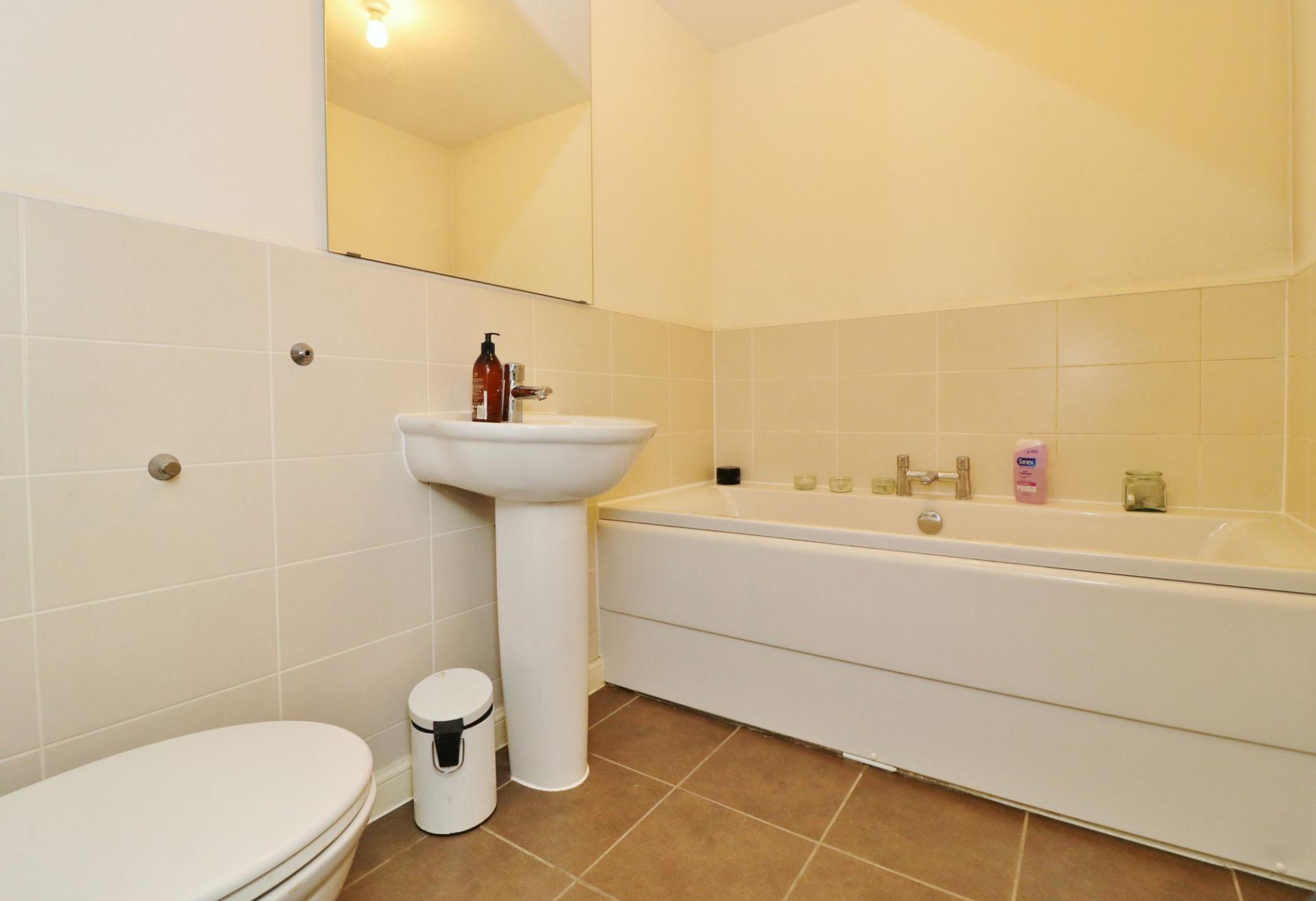On the first floor there is a spacious sitting room overlooking the rear garden, which is currently being used as an additional bedroom. There is a further bedroom which faces the front of the property and has a built-in wardrobe, as well as a modern family bathroom comprising a panel enclosed bath, wash hand basin and WC.