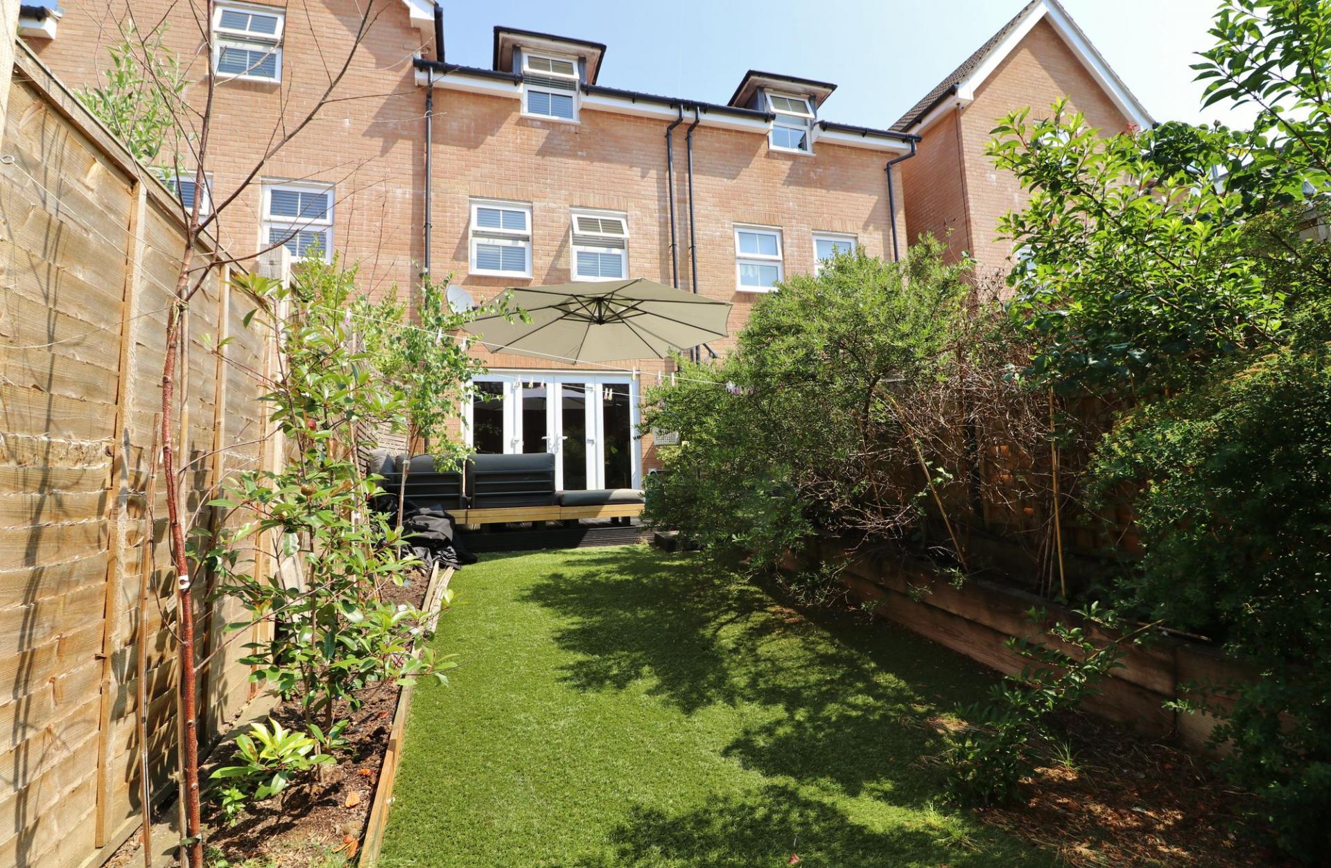 This well-presented, three/four bedroom town house benefits from a southerly facing rear garden, a garage to the rear and an allocated parking space to the front.