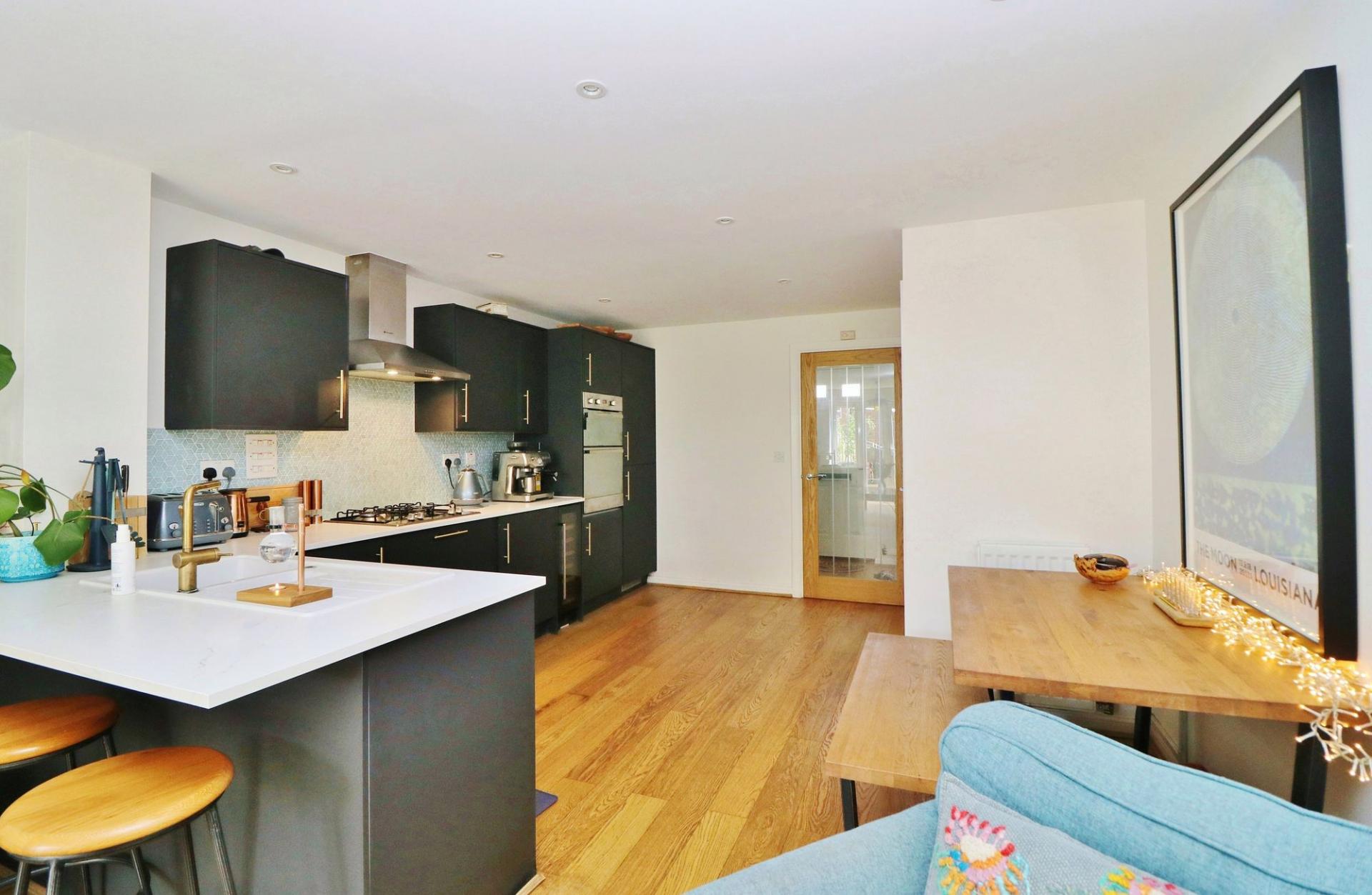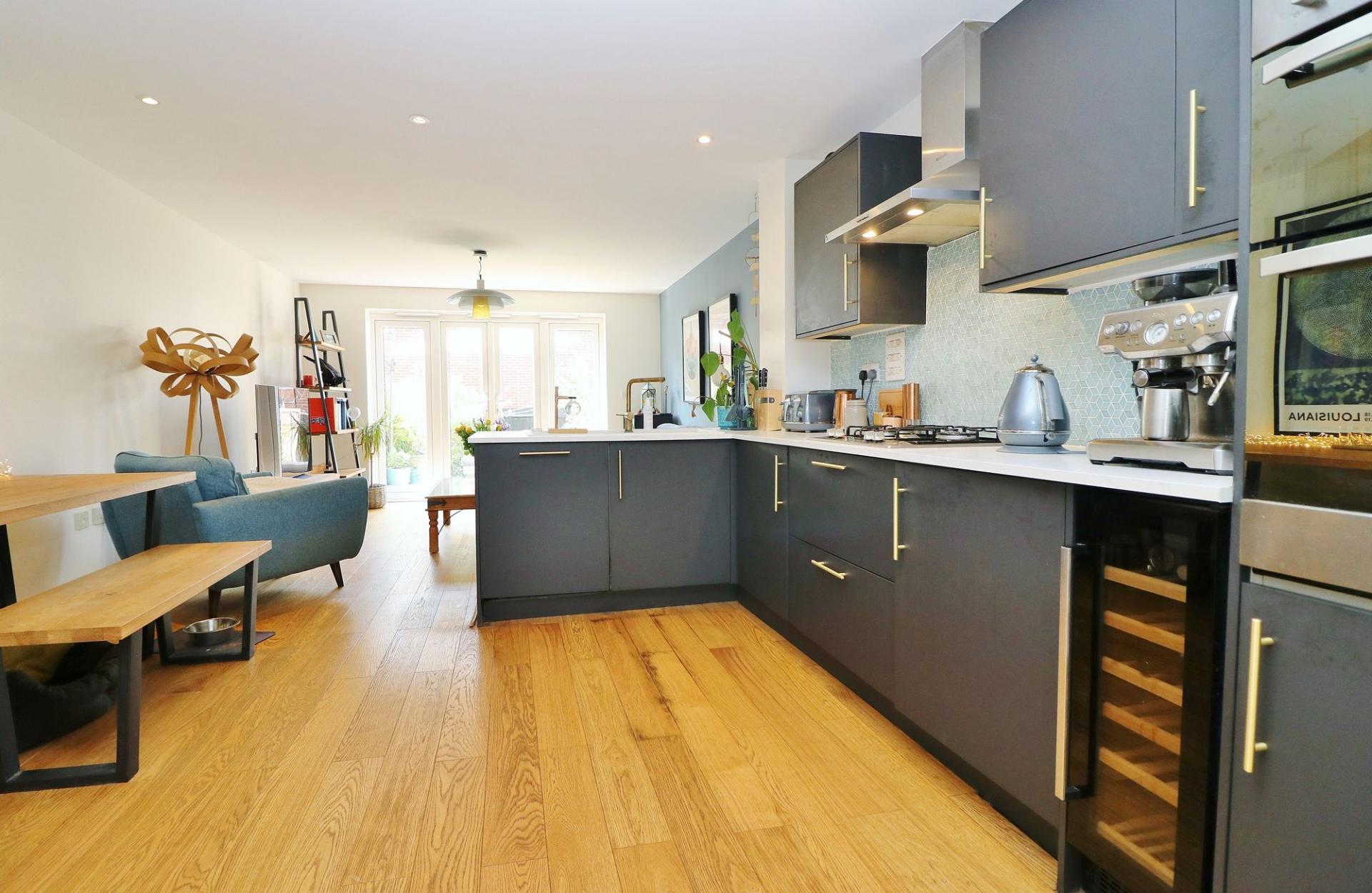 The accommodation on the ground floor comprises an impressive, open plan kitchen/diner/family room with French doors to the rear garden, and a modern WC.
