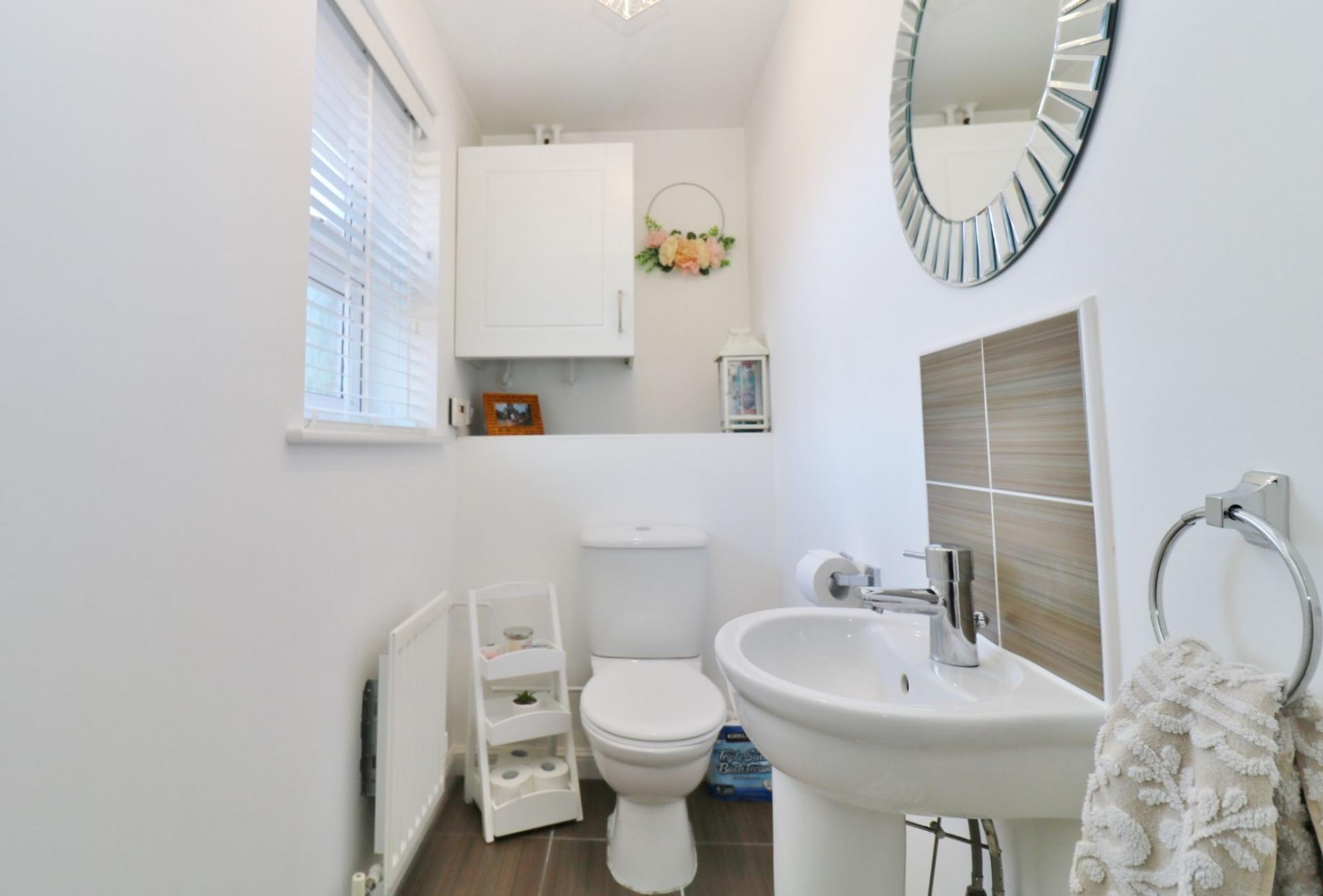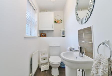 The entrance hall has stairs to the first floor and doors through to the kitchen/diner and cloakroom, which has a window to the front, a WC and wash hand basin.