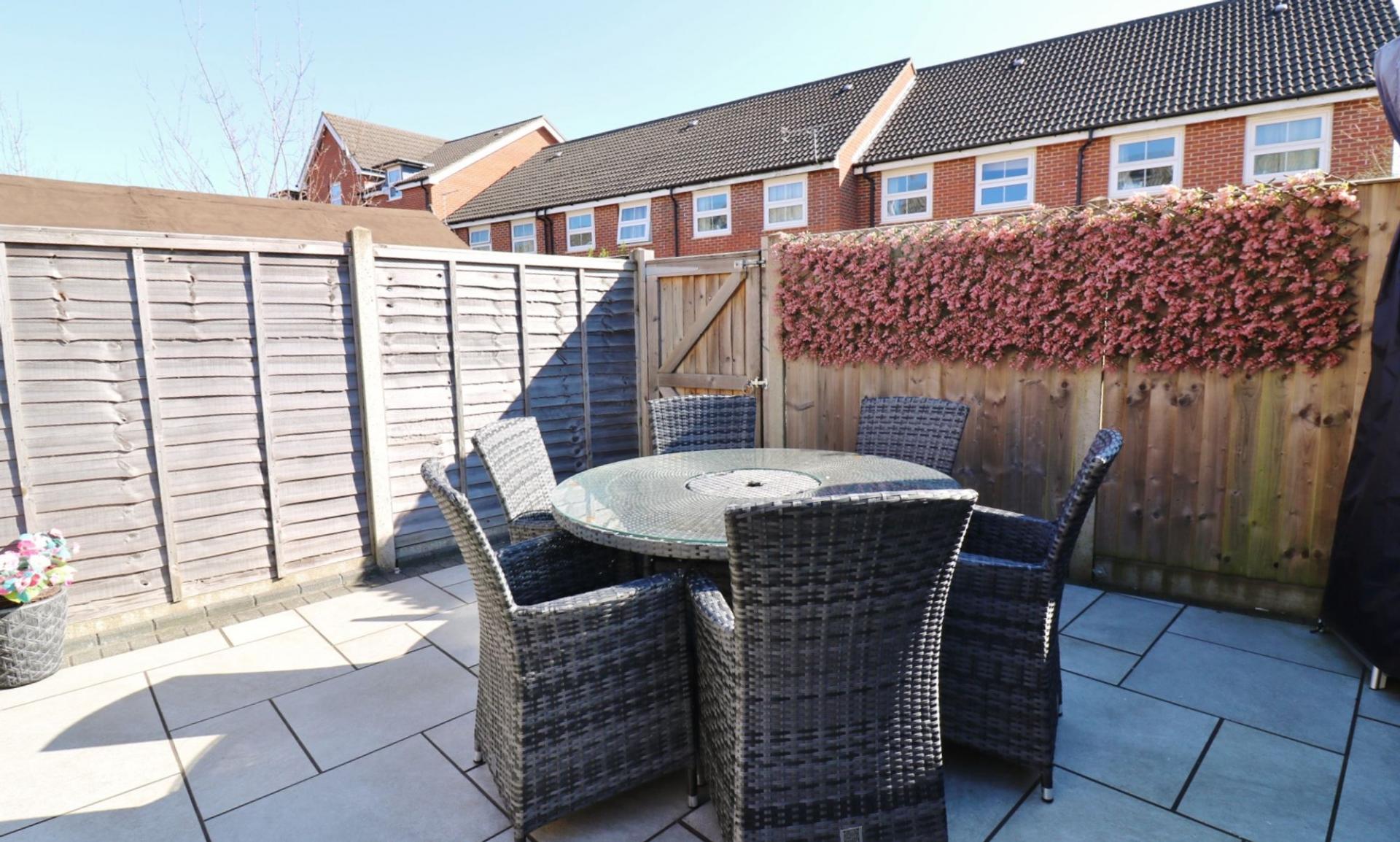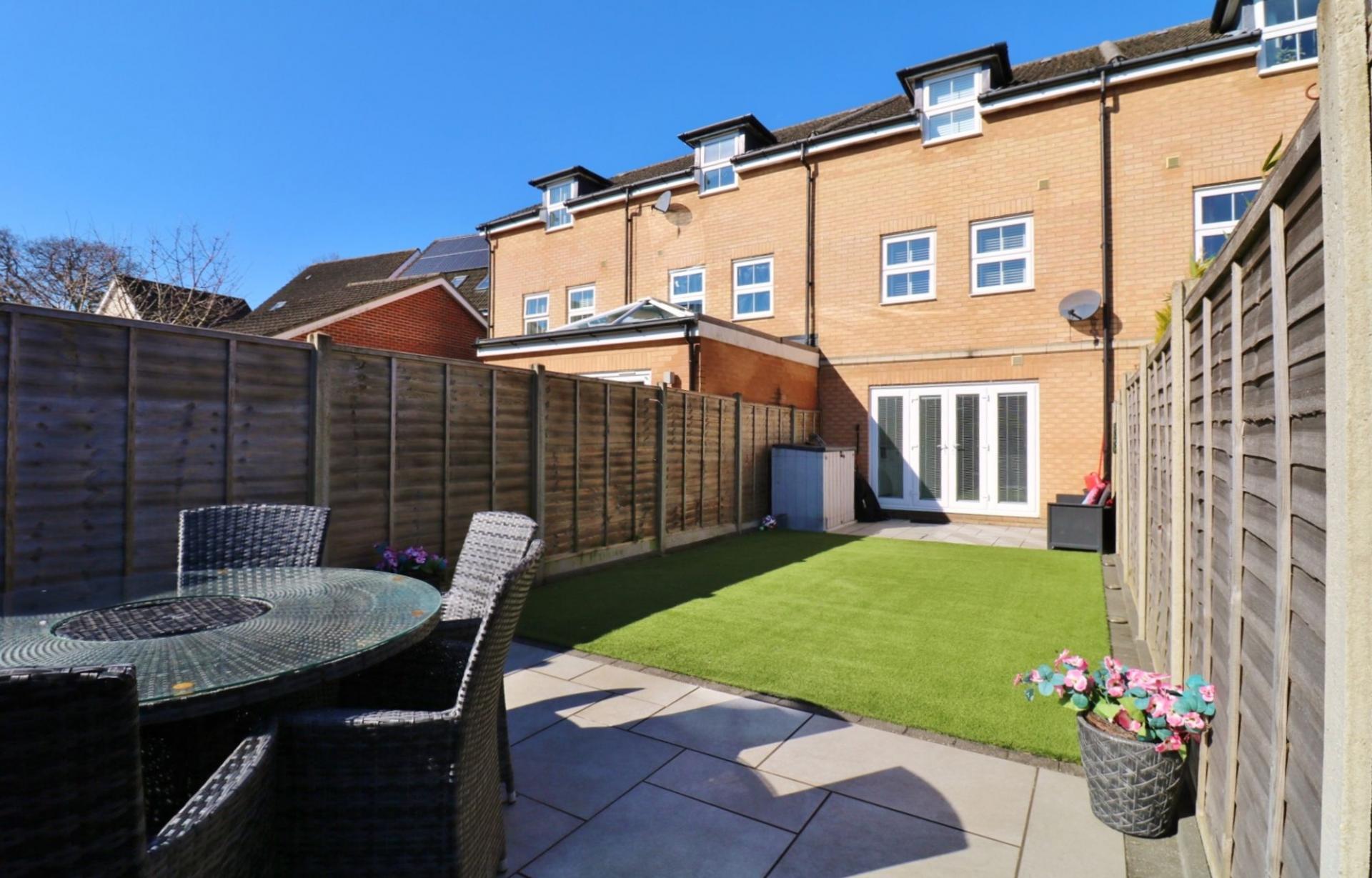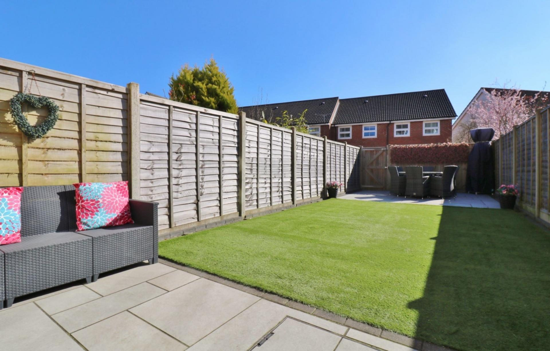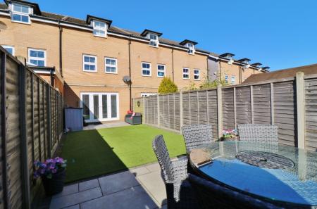 The landscaped rear garden enjoys a south easterly aspect and has a paved patio area, leaving the rest of the garden laid to artificial lawn with an additional paved seating area at the end with gated, pedestrian access.