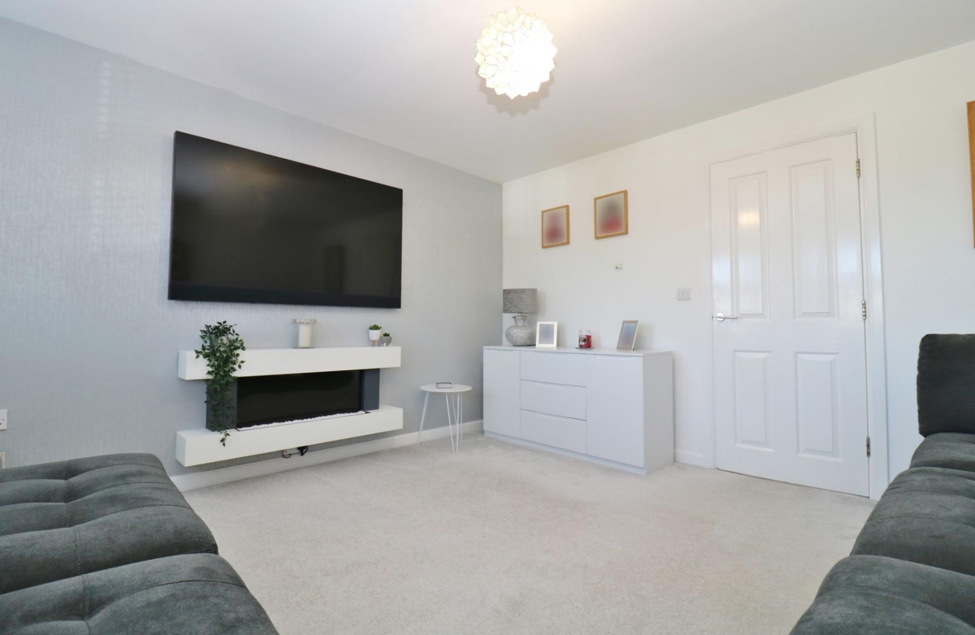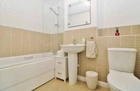 On the first floor, the good size lounge/additional bedroom has two windows to the front aspect, whilst to the rear there is a double bedroom with fitted wardrobes and storage. The modern family bathroom comprises a panel enclosed bath with shower over, wash hand basin and WC.