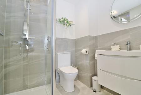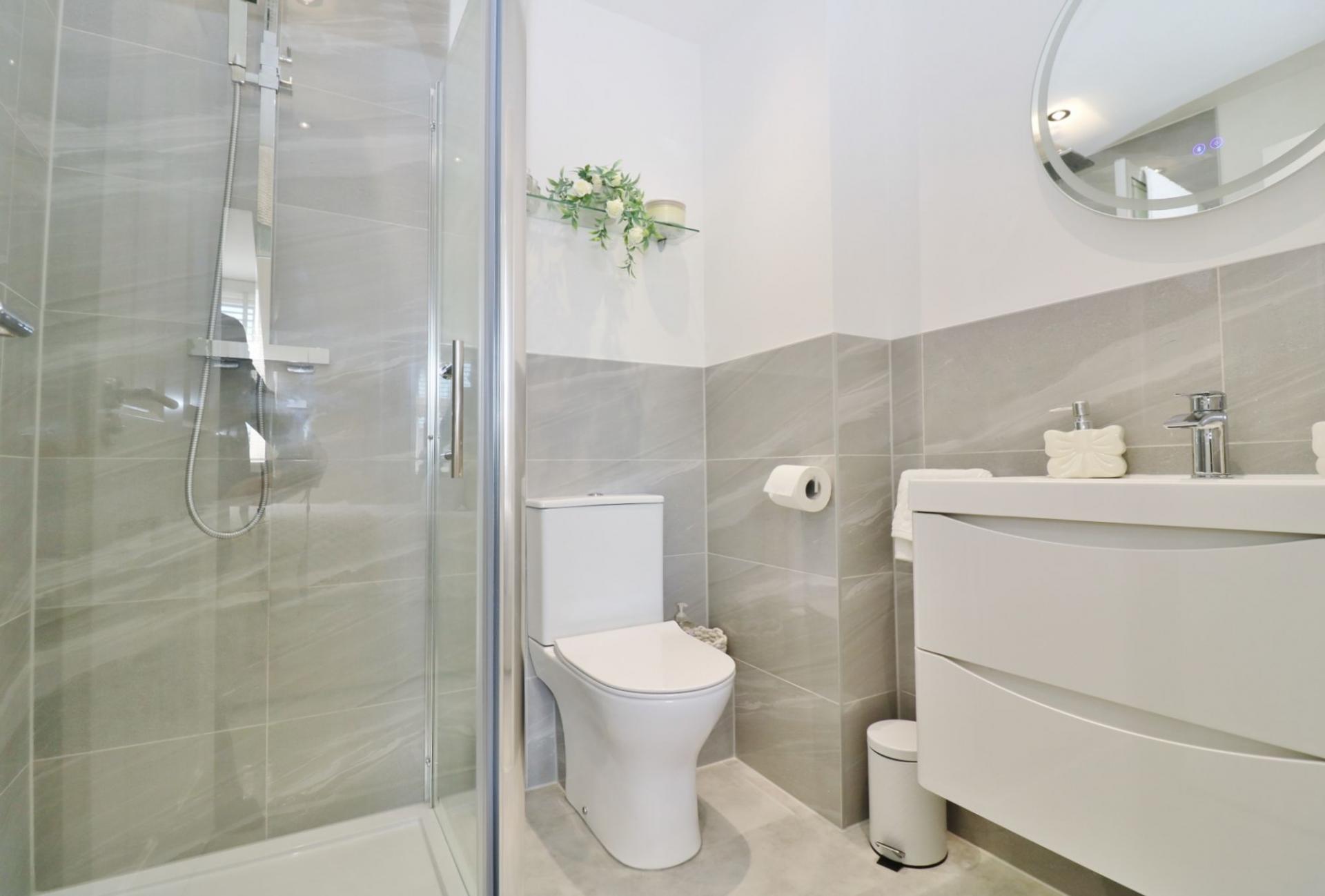 On the top floor there are two, well-proportioned double bedrooms, both with fitted wardrobes and featuring modern en-suite’s comprising a shower cubicle, vanity wash hand basin and WC.