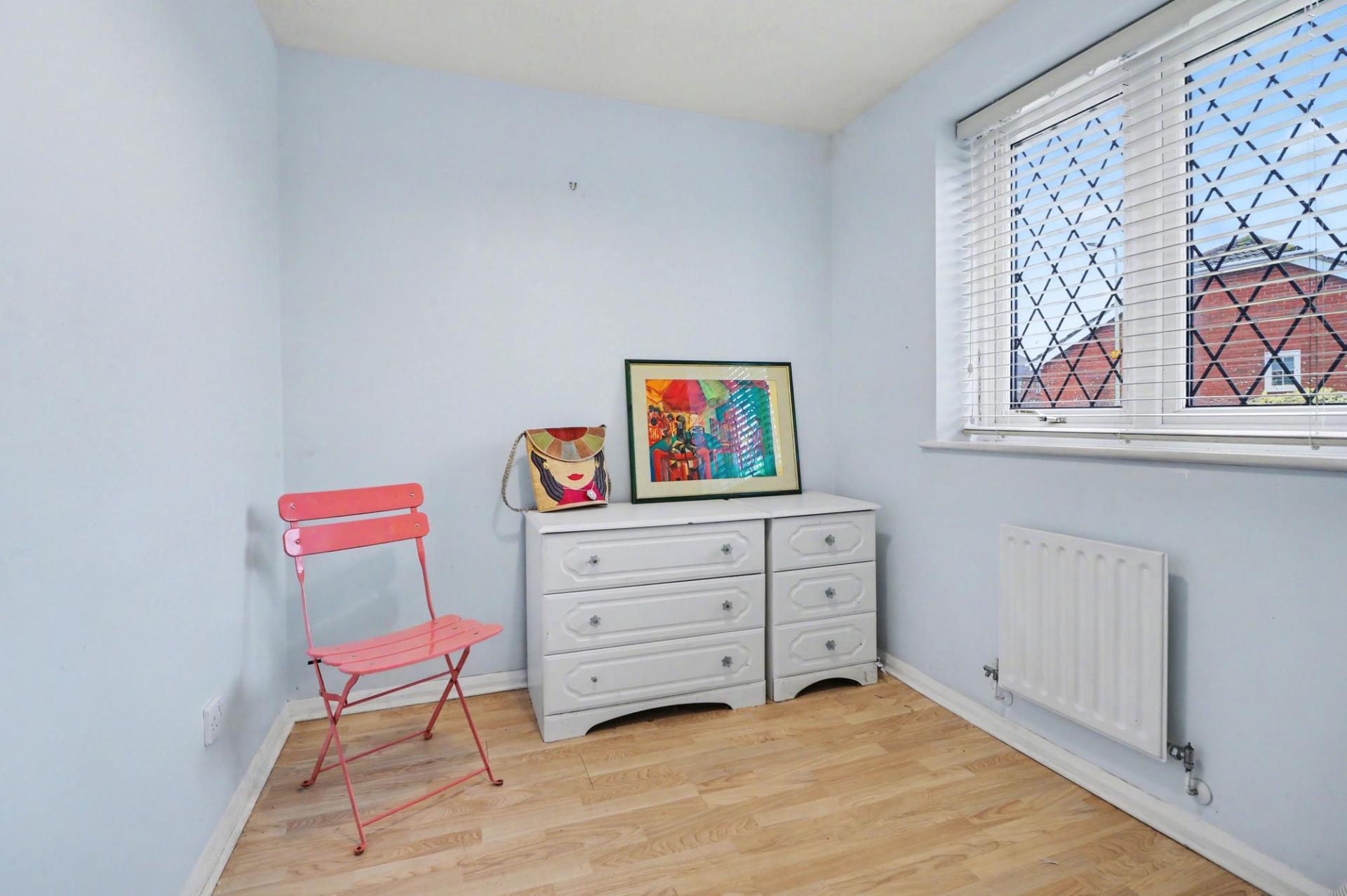 The good-sized master bedroom has a fitted wardrobe and a window overlooking the rear garden, whilst the second bedroom has a window to the front.