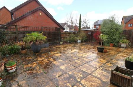 To the front there is a lawned garden and driveway parking leading to the attached garage. Gated, side access leads round to the rear garden which enjoys a south westerly aspect and is mainly laid to paving.