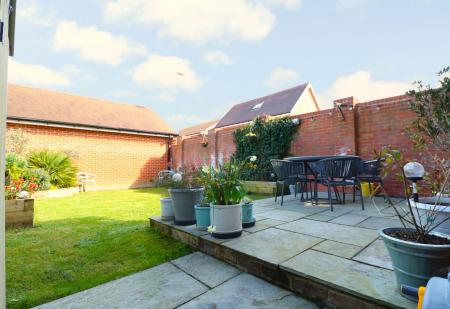 Gated, side access leads round to the attractive, landscaped rear garden which has a paved seating area, leaving the rest of the garden laid to lawn with raised flower beds.