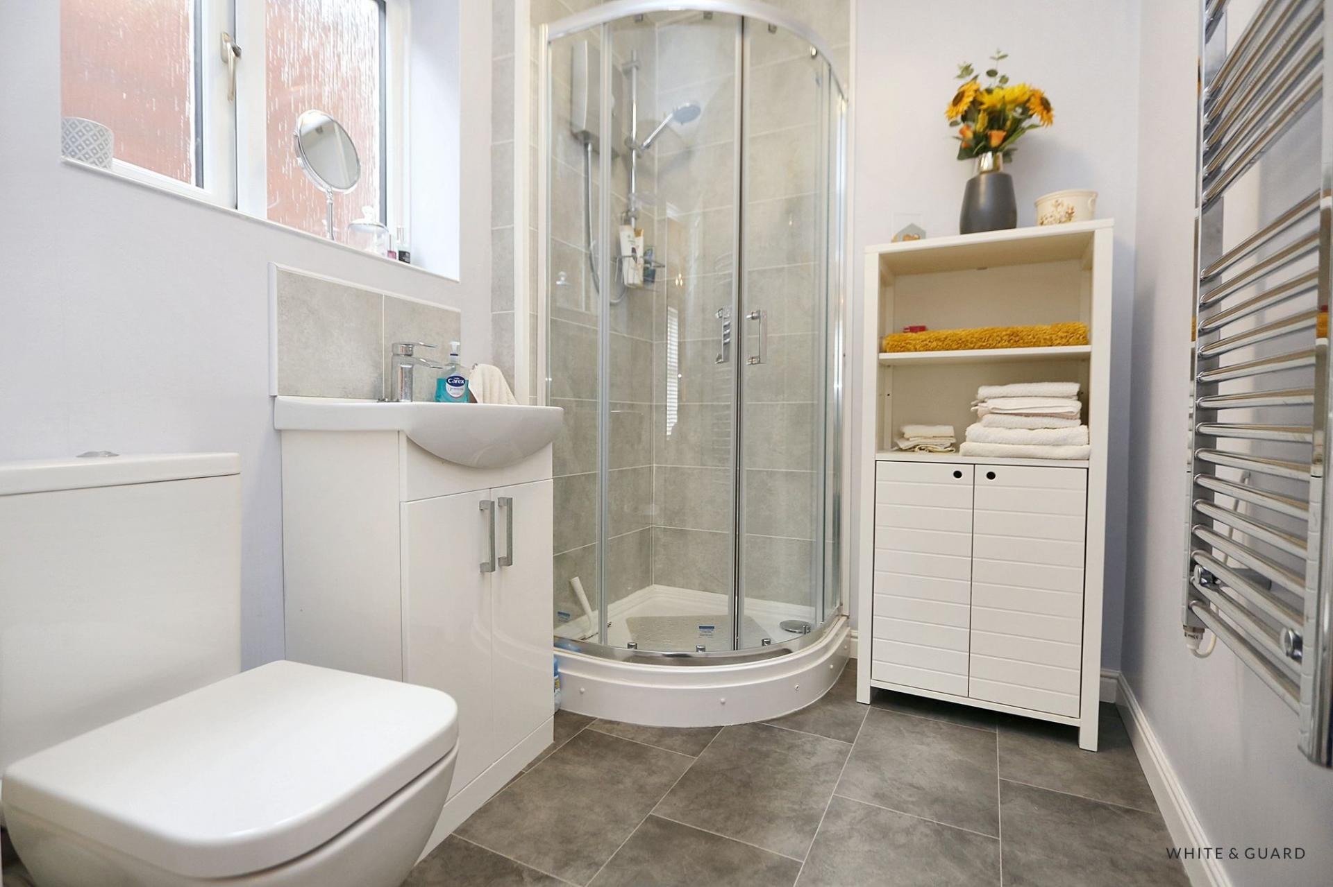 A security entrance door opens into to the well-presented communal areas and stairs lead to all floors. Flat three can be found on the first floor and enjoys a shared balcony, where a double glazed door then opens into the entrance hall. The welcoming hallway provides access to all the accommodation. The main living space is set at the rear of the property and has been tastefully decorated, laid to light wood effect flooring the room provides space for a living area in addition to a dining table and chairs. An archway transitions into the modern re-fitted kitchen which comprises a range of matching high gloss wall and base level units with complimentary quartz effect work surfaces, which incorporate an inset stainless steel sink and drainer, induction hob and fitted electric oven. Furthermore space is provided for a fridge freezer and has attractive brick effect tiling to the principal areas. Completing the accommodation is a well-proportioned double room which benefits from fitted wardrobes and still allows space for freestanding furniture, a door leads through to a well appointed en-suite shower room. Presented in excellent order the suite consists of an enclosed shower cubicle, vanity wash hand basin, WC and heated towel rail.