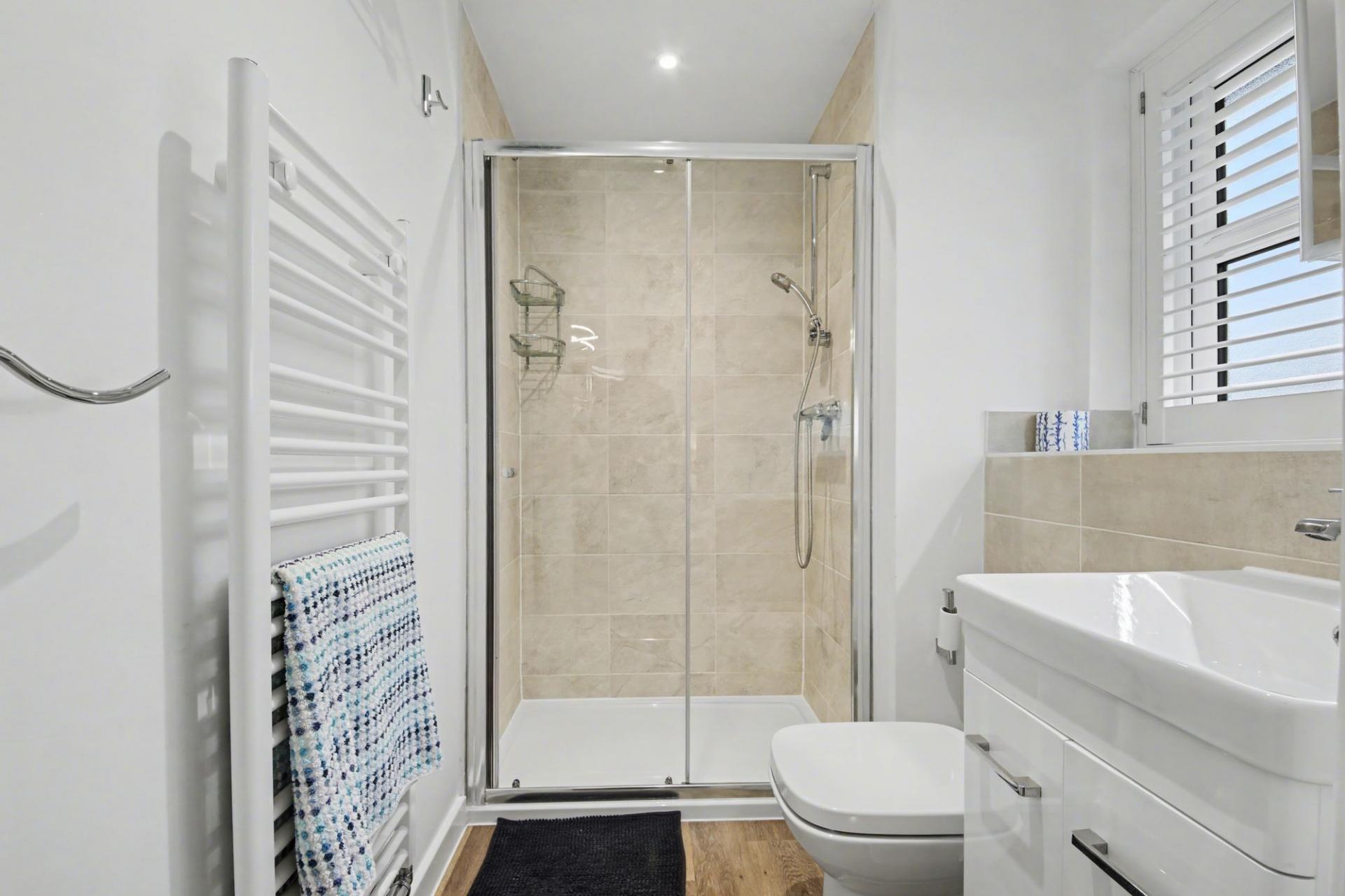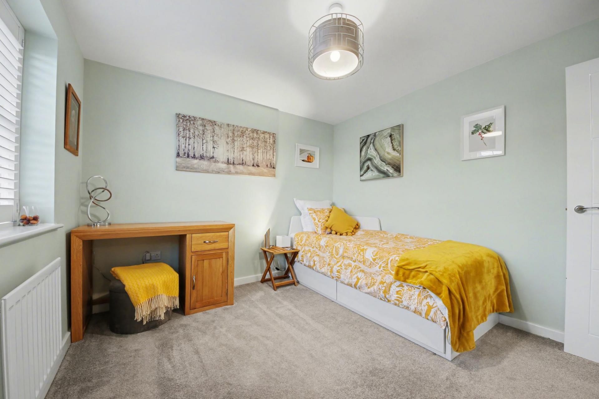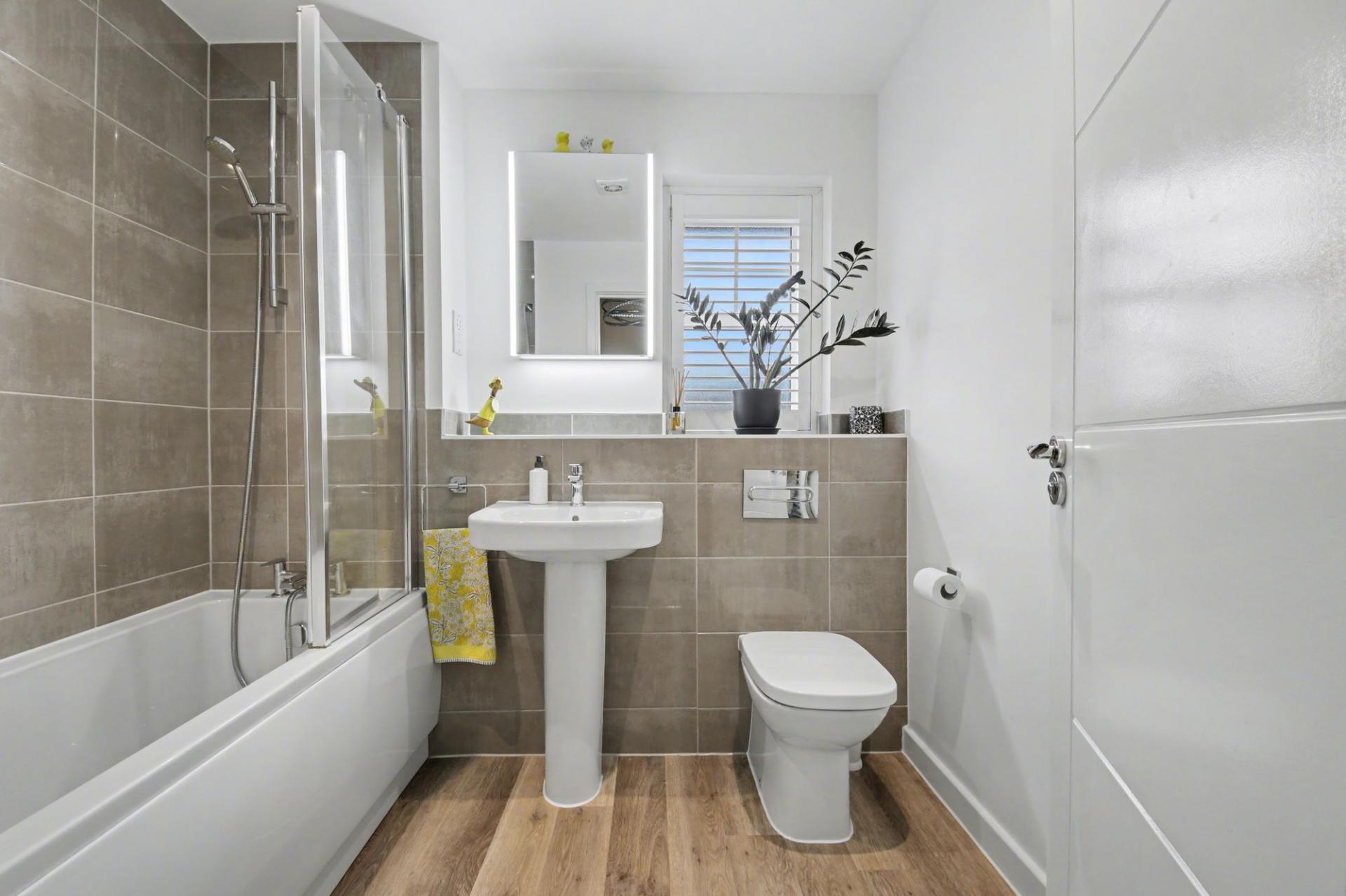 Upstairs, the accommodation continues to impress. The principal bedroom enjoys a luxurious en-suite, while a second bedroom also benefits its own en-suite, ideal for guests or older children. A contemporary family bathroom serves the remaining bedrooms; all finished with upgraded fittings and modern tiling. The overall feel is one of calm sophistication, with each room designed to be both comfortable and functional.