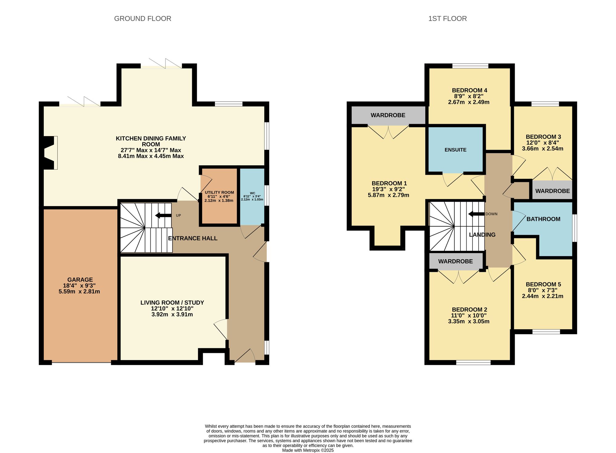 The first floor landing leads to all bedrooms and a well appointed family bathroom. The impressive 19ft master bedroom has fitted wardrobes and a modern en-suite shower room, bedrooms two and three are also good size double rooms and again benefit from fitted wardrobes. The fourth and fifth bedrooms are nicely sized and well-presented single rooms. The four piece family bathroom suite has a panel enclosed bath, enclosed shower cubicle, WC, vanity wash hand basin and heated towel rail.