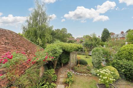 The established rear garden has been lovingly maintained, laid to lawn with an extensive range of mature shrubs and plants. A shingled seating terrace can be found towards the rear of the garden, alongside an allotment area and timber framed workshop.