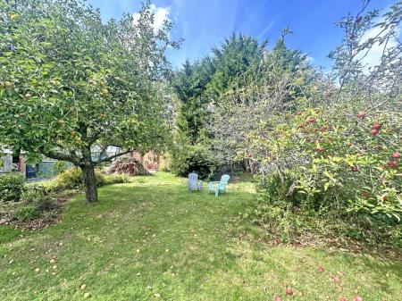 The front garden is an impressive size with hedge borders, two cherry trees and other, interspersed trees. It is mainly laid to lawn with a large driveway providing excellent off-road parking.