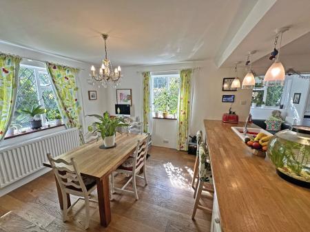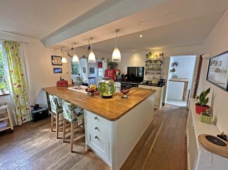 This opens up to the entrance hallway with fitted good sized coat/shoes cupboard. It boasts engineered oak flooring and a ledge and brace wooden door leads into the hub of the property which is the very spacious kitchen/family/dining room.