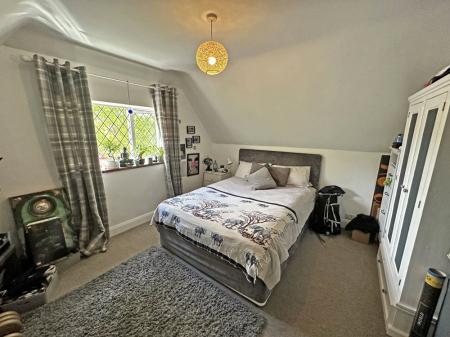 The principal double bedroom benefits from triple aspect windows including a front to back aspect, creating a wonderfully light room with plenty of fitted wardrobe space and hidden shelving. The room has attractive sloping ceilings, wooden ledge and brace door as well as the original fireplace.