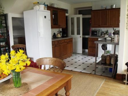 15' 0" x 9' 0" (4.57m x 2.74m) The kitchen is bright and welcoming, with a window to the front offering plenty of natural light. A door leads to the stairs, which take you to the first floor, while another door opens to the side, where steps lead down to a small area of land. There is also a small stone-built outhouse, which was formerly an outdoor W.C., providing additional potential for use or storage.