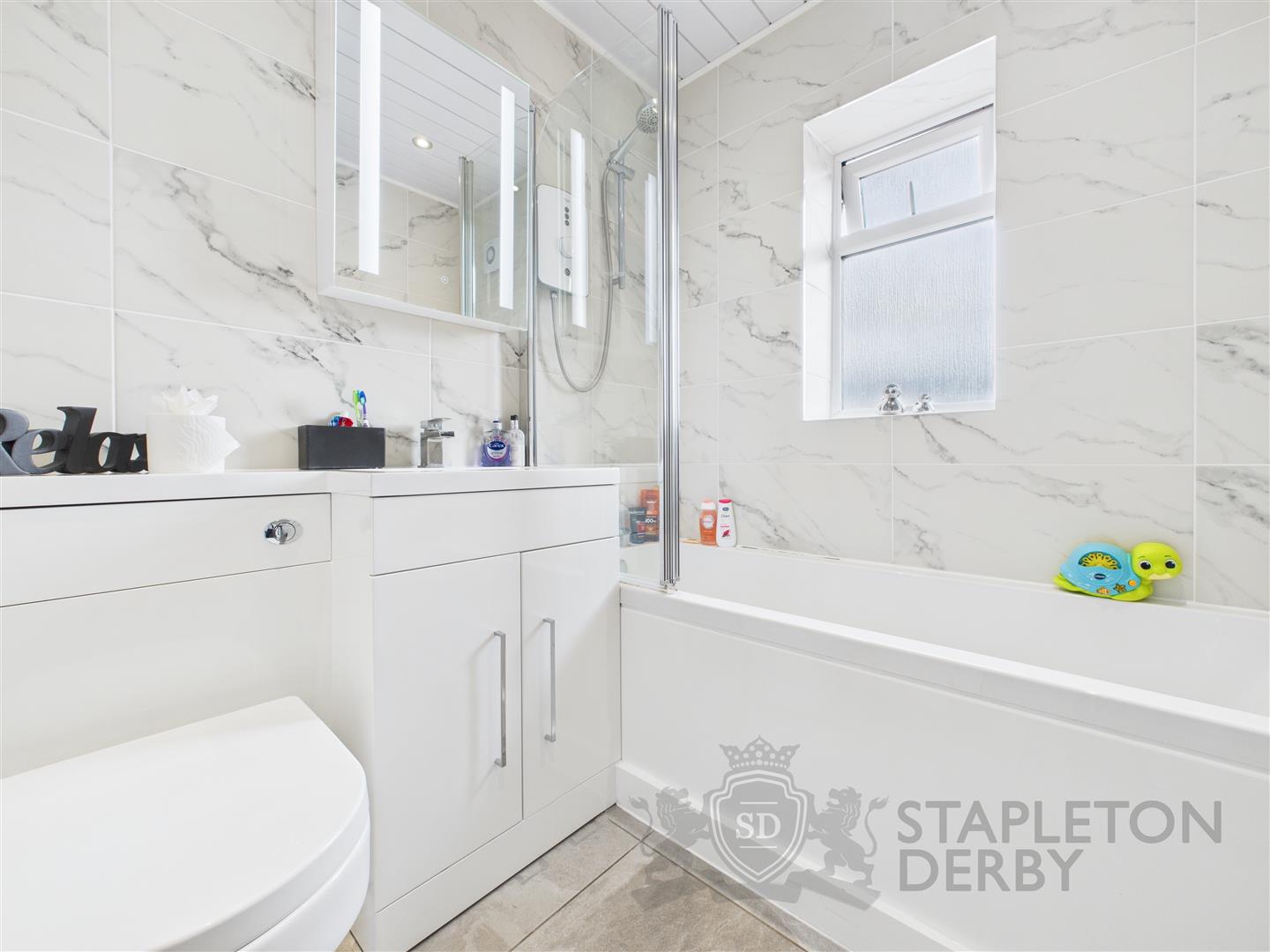 Inside, you will find three well-proportioned bedrooms, providing ample space for family living or guests. The two reception rooms offer versatility, perfect for entertaining or relaxing with loved ones. The bathroom features a modern white suite, ensuring a fresh and clean aesthetic.