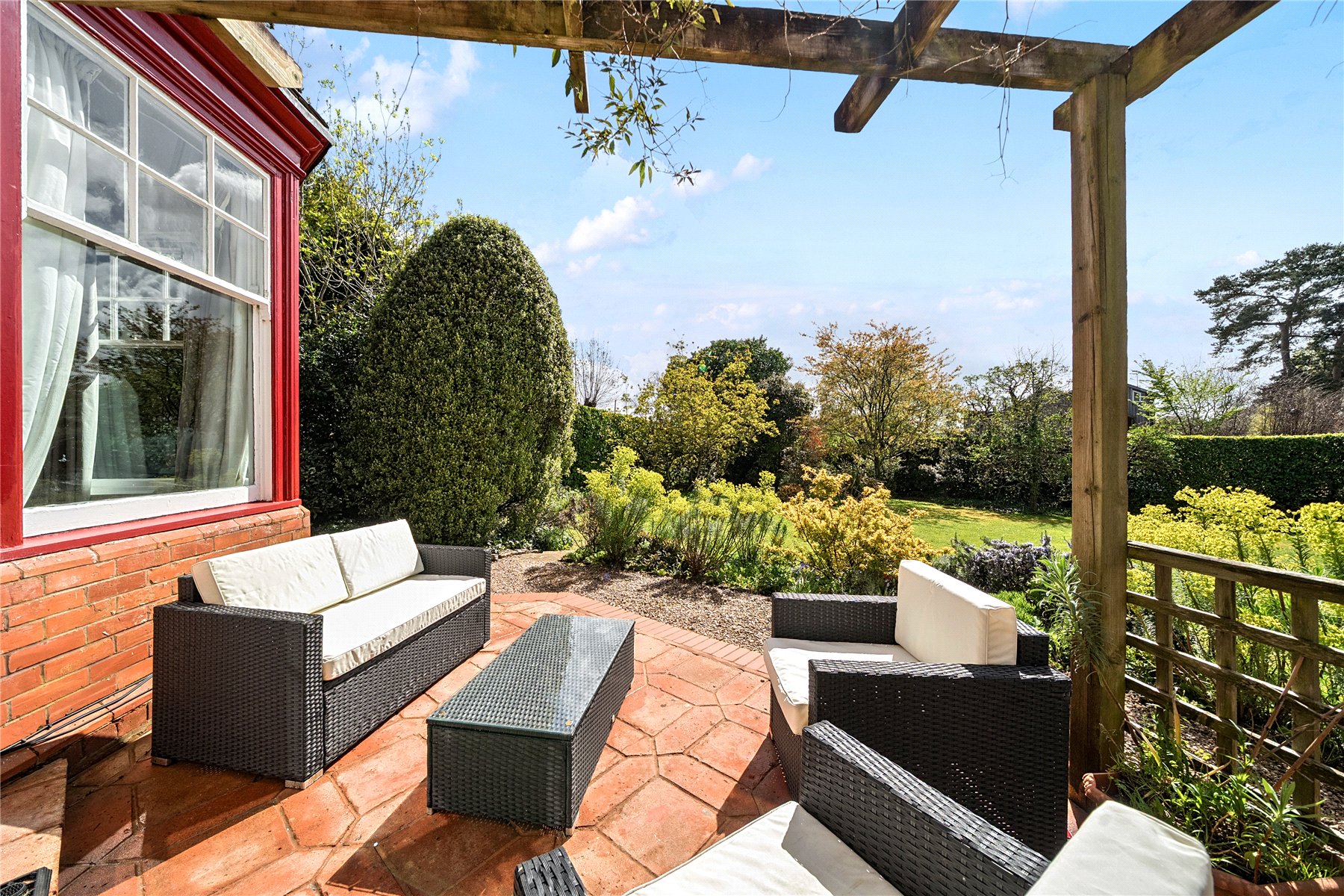 Externally, the south-facing garden is a key feature, providing a private and established outdoor space that enjoys sunlight throughout the day. It works as a natural extension of the living accommodation, ideal for both relaxing and entertaining. To the front a brick paved and gravelled driveway provides ample off road parking and leads to a substantial garage. To one side there is an additional useful brick outbuilding.