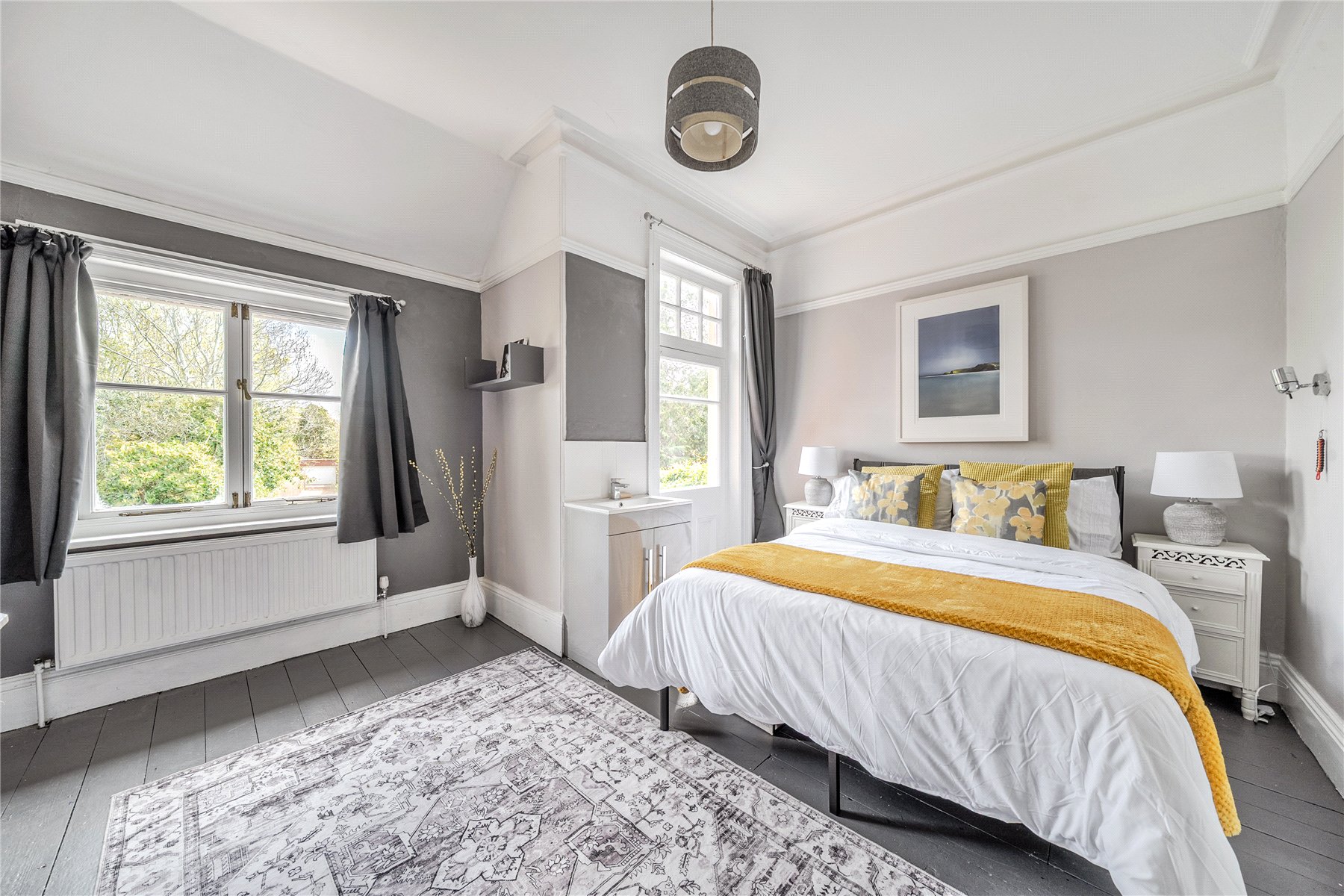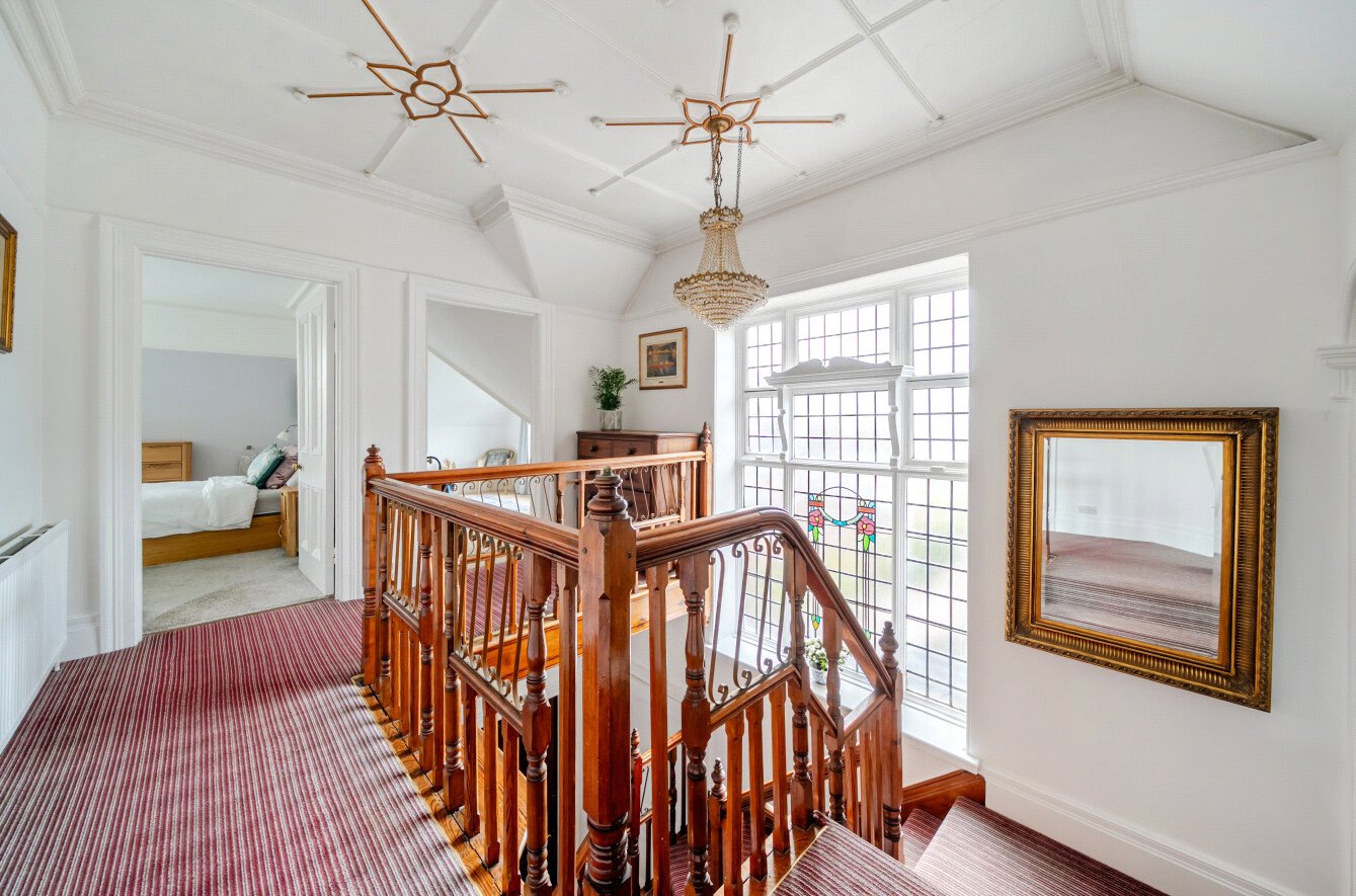 Upstairs, the sense of space continues, with five well-proportioned bedrooms arranged across the first floor. The principal bedroom is particularly generous, complemented by further double bedrooms that can comfortably accommodate family or guests, while also offering flexibility for additional workspace if required.