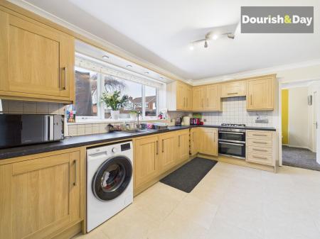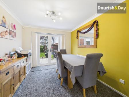 The property opens into a welcoming entrance hallway with guest WC, leading to a comfortable living room, a separate dining room, a well-appointed kitchen and a useful utility room. To the first floor, there are four bedrooms, three of which are doubles, along with an ensuite shower room and a family bathroom.