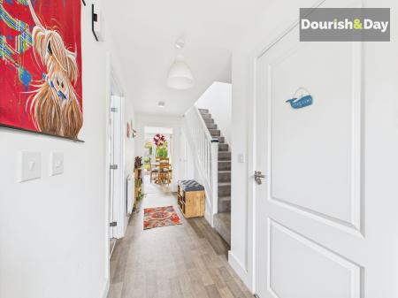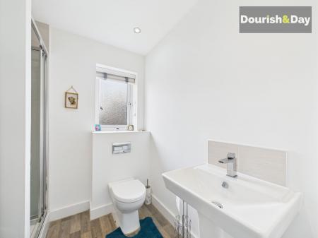 Upstairs, you’ll find four generous bedrooms, including a principal suite with built-in wardrobes and a stylish en-suite shower room. The family bathroom is finished to the same high standard, offering a clean, contemporary space to start the day.