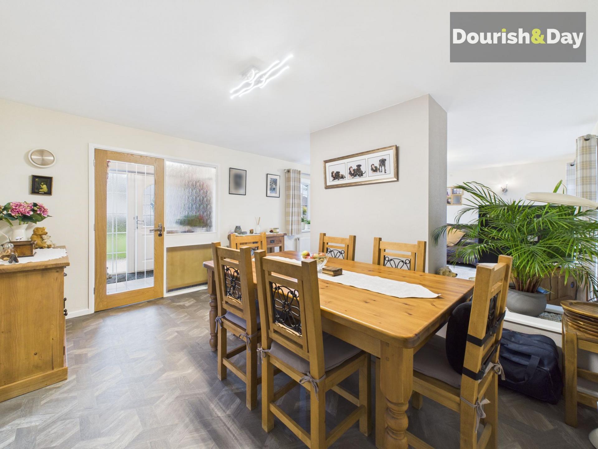 Inside, the home is well-presented throughout and thoughtfully arranged. An entrance hall leads to a guest WC before opening into a generous living and dining room, creating an inviting space for both relaxation and entertaining. The kitchen comes complete with built-in appliances and is complemented by a separate utility room for added practicality. An inner hall connects three good-sized bedrooms and a modern shower room, providing a layout that works effortlessly for day-to-day living.