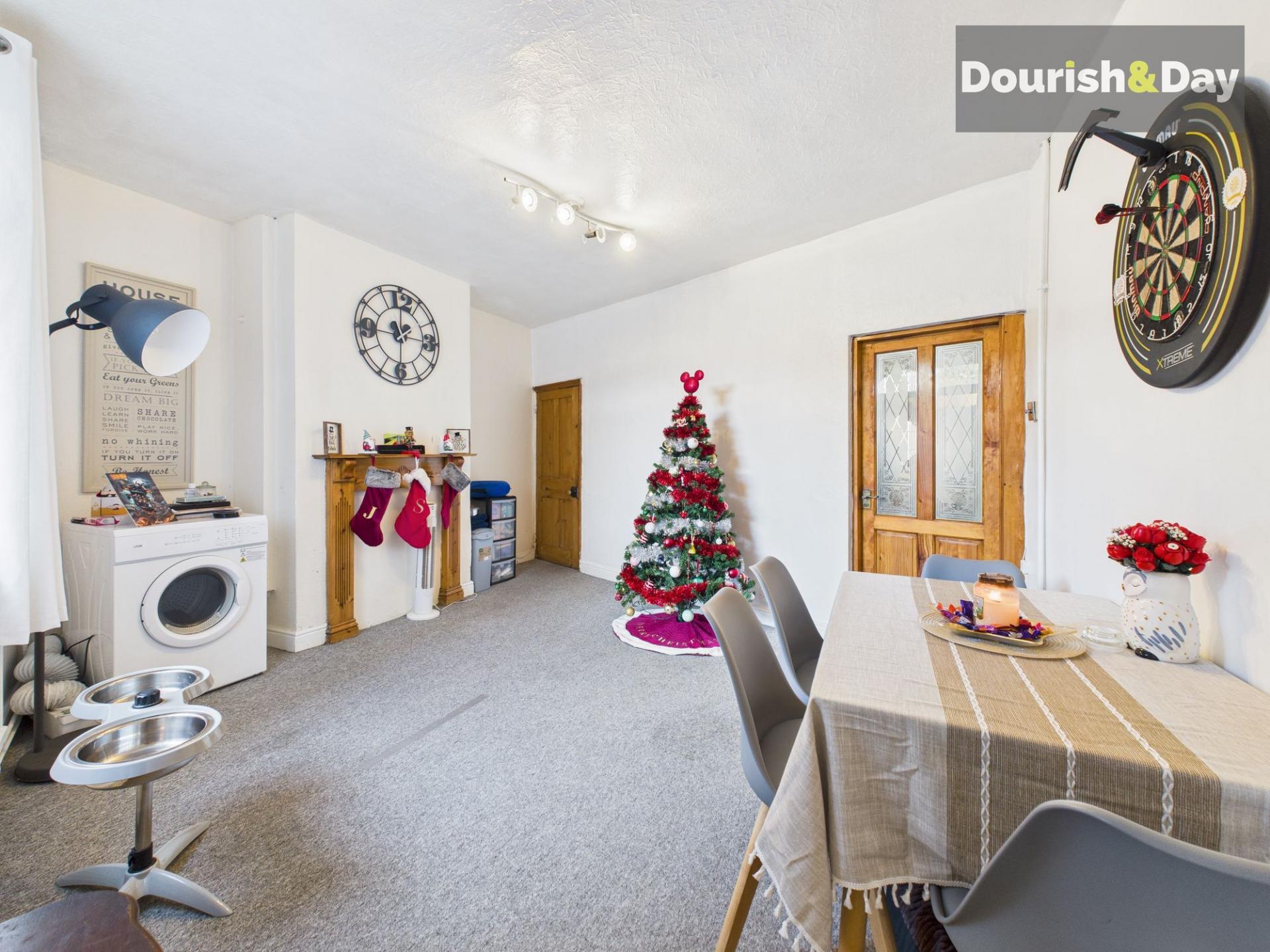 Inside, you’re welcomed by an entrance hallway leading to a front living room and a separate dining room - ideal for both relaxed nights in and entertaining. The kitchen sits at the rear of the property. The home benefits from a useful cellar, offering brilliant extra storage space. Upstairs, there are two well-proportioned double bedrooms and a family bathroom.