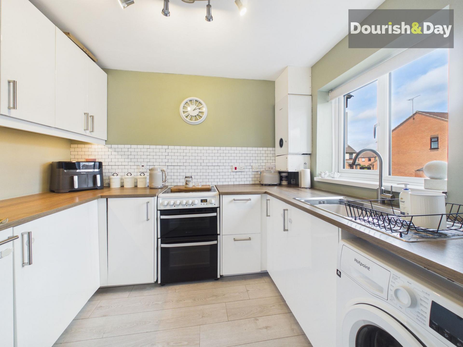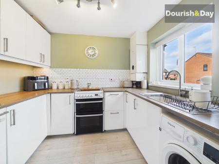 The accommodation is thoughtfully arranged and ready to move straight into. An entrance hallway leads to the kitchen, while the spacious living/dining room provides a fantastic space for both relaxing and entertaining. Complete with useful built-in storage and French doors opening onto the rear garden, this room is filled with natural light and offers seamless indoor-outdoor living. Upstairs, there are two generous double bedrooms along with a contemporary family bathroom.