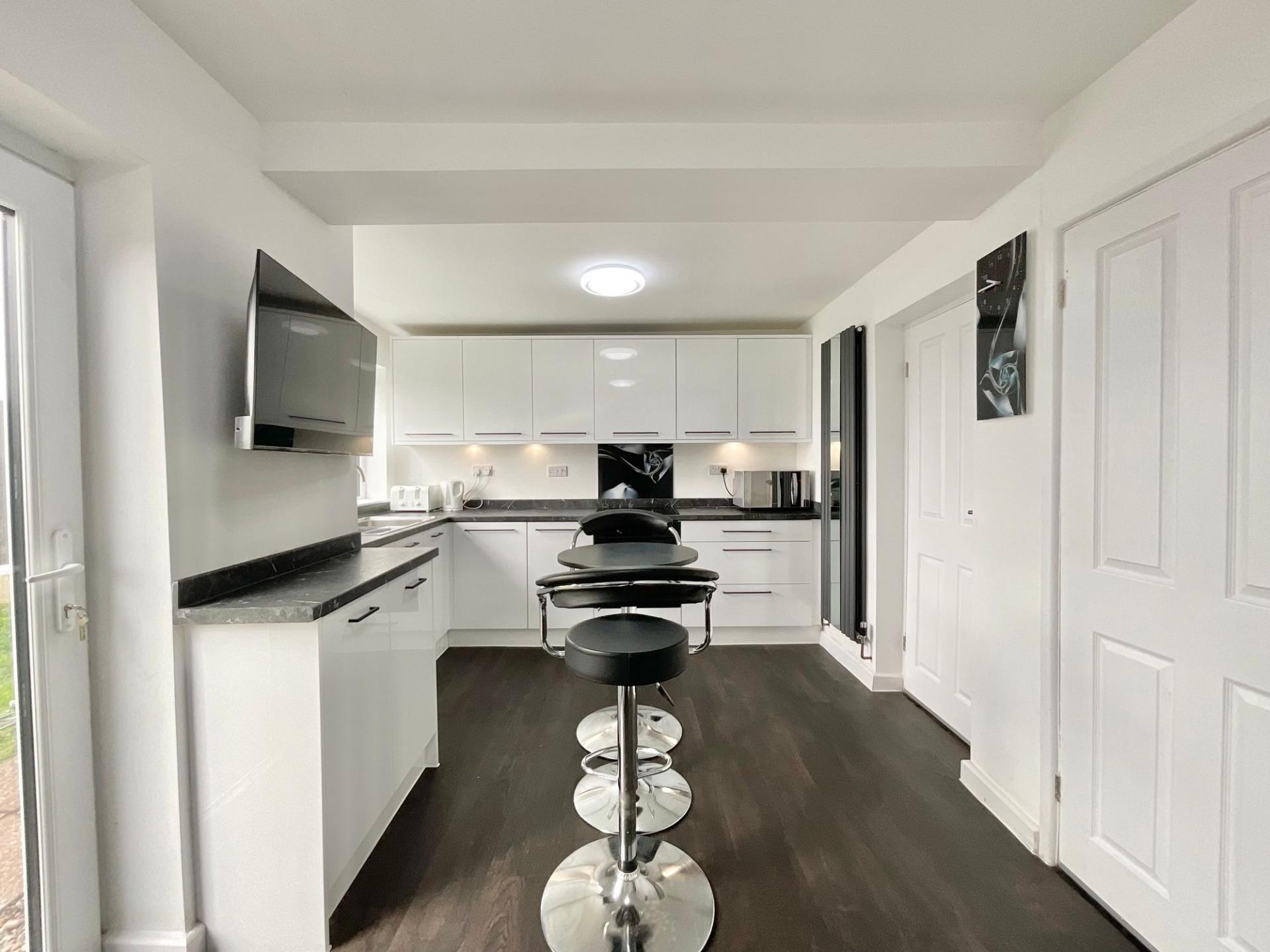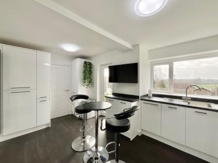 - Upgraded kitchen with sleek white cabinetry, integrated appliances & an under-stairs pantry/storage and a utility/store space.