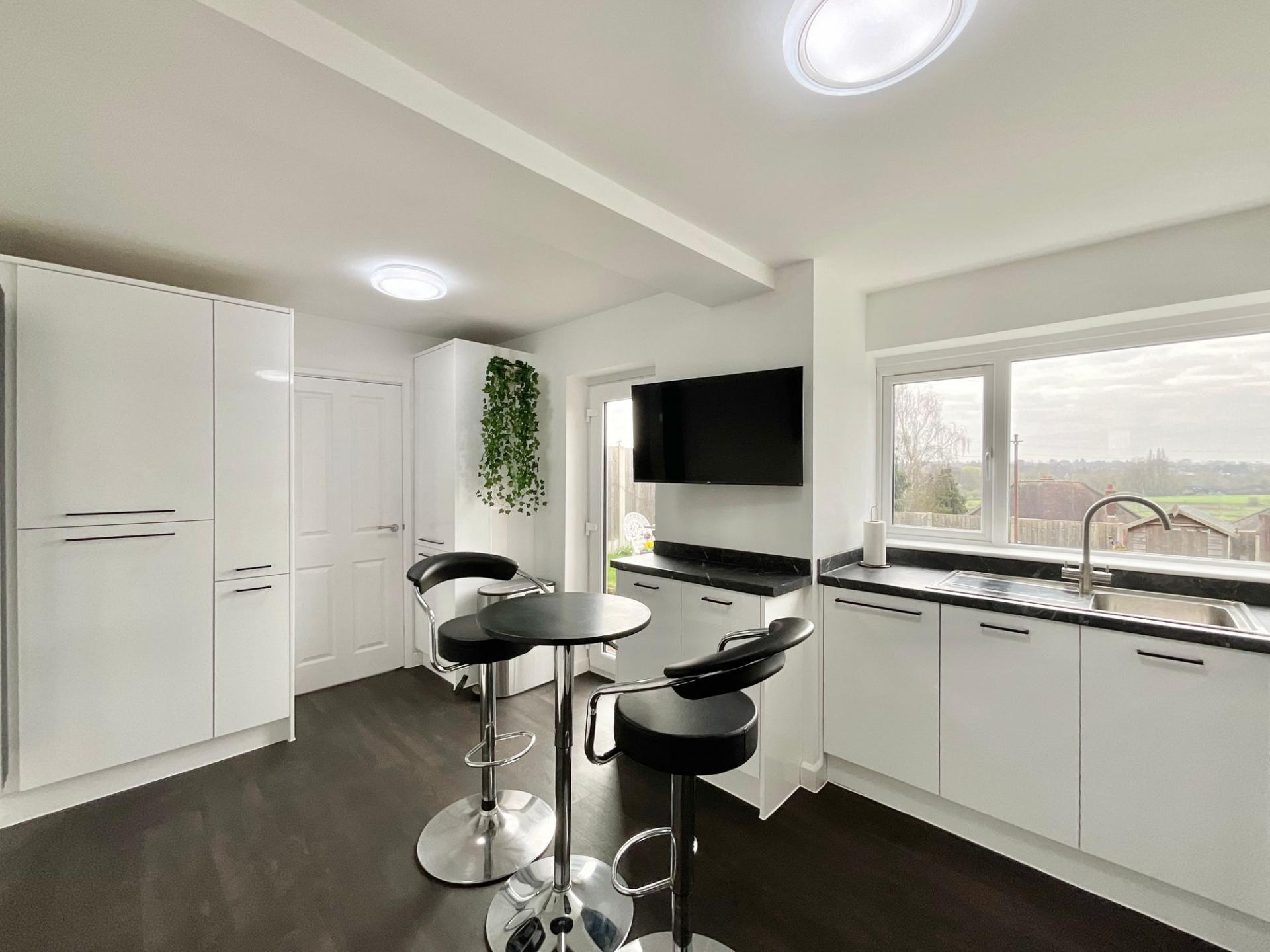 - Bright lounge/diner with dual-aspect windows and French doors leading to the garden, ideal for relaxing & entertaining.