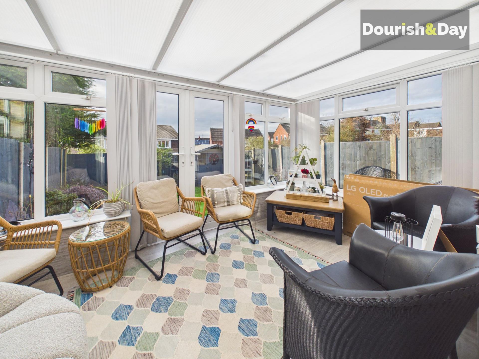 Internally, the home is very well presented throughout and thoughtfully arranged. An entrance porch leads into a welcoming hallway, which flows through to a spacious open plan living and dining room. There is a modern fitted breakfast kitchen offering ample storage and worktop space and built in appliances. The ground floor further benefits from a utility room, downstairs shower room, separate guest WC. A conservatory overlooks the rear garden, providing an additional reception area. Upstairs, there are three well-proportioned bedrooms, two of which are generous doubles, along with a stylish and contemporary shower room.