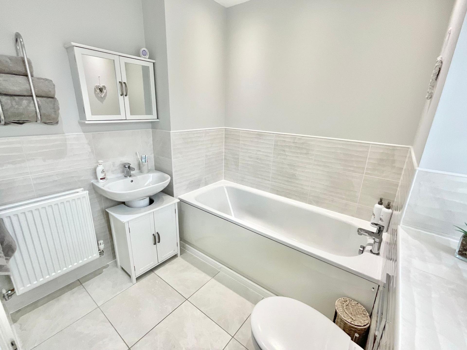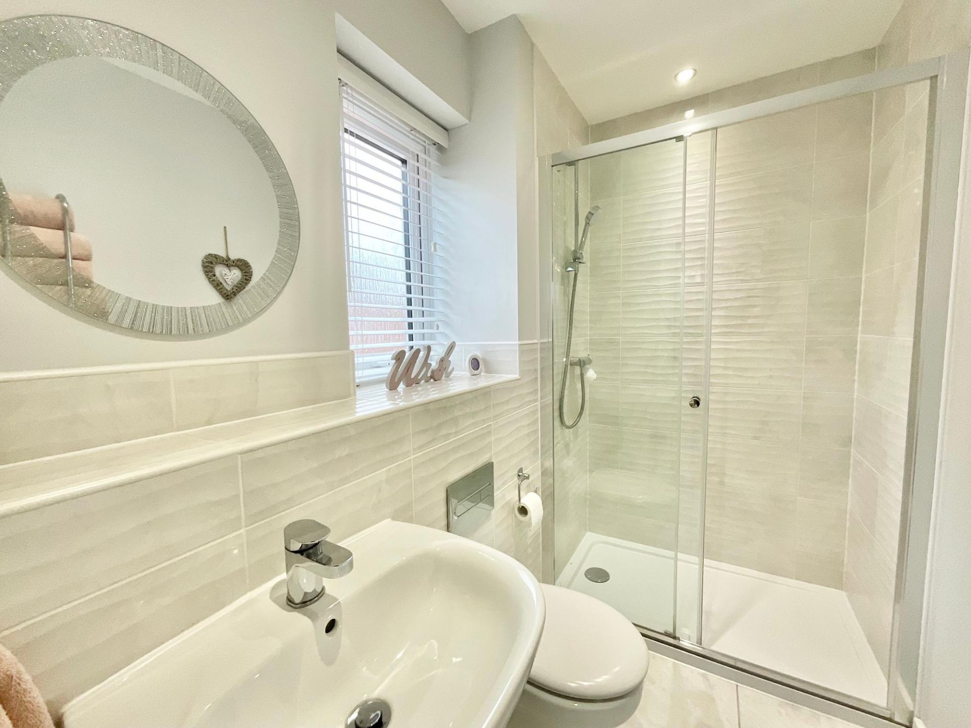 • Four generously sized double bedrooms including a master with fitted wardrobes and en suite shower room, family bathroom with a bath, shower, sink, and W/C, all spread over two generous floors.