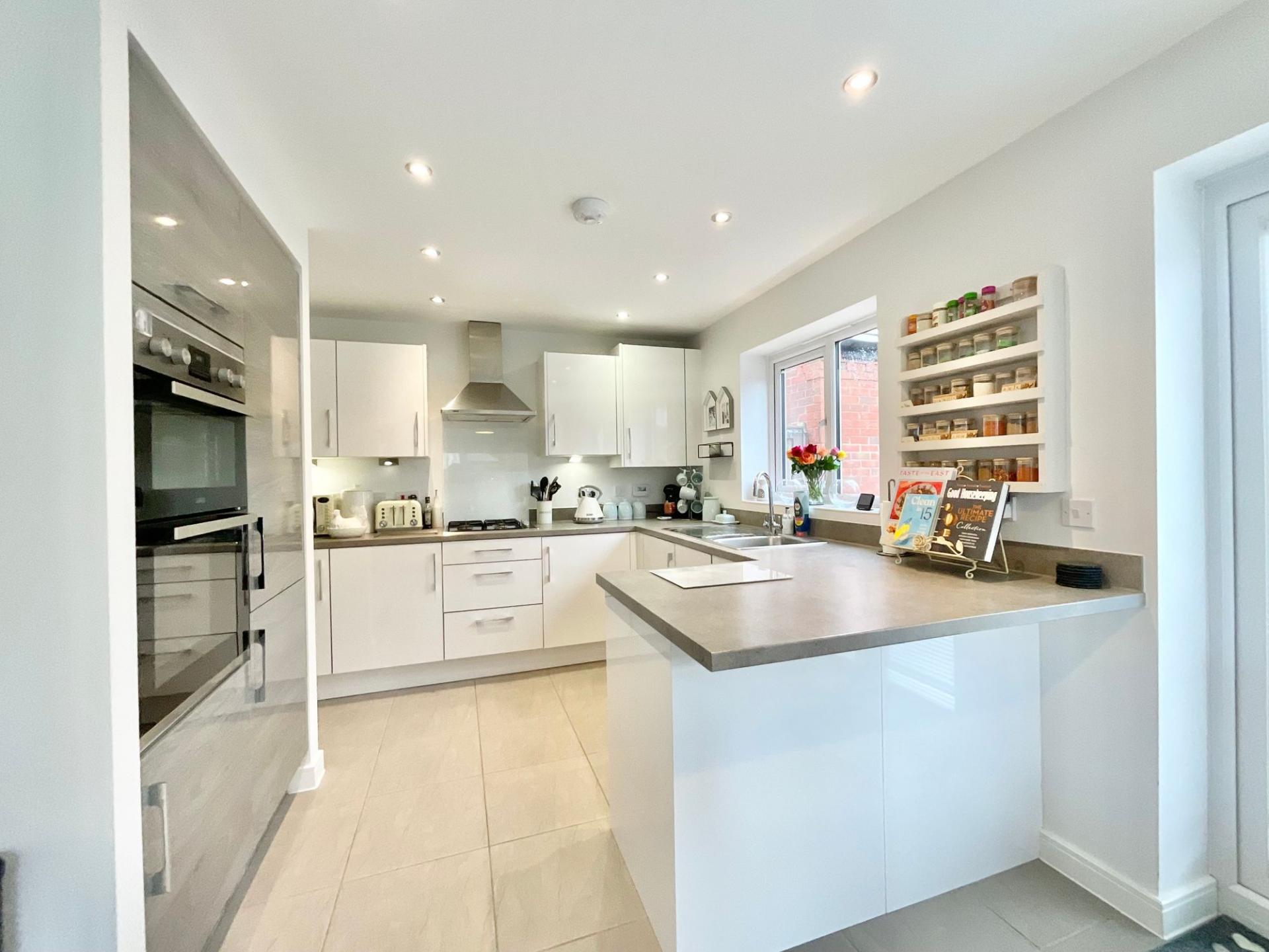• Open-plan kichen/diner with modern kitchen, integrated appliances, separate utility and breakfast bar. Warm and welcoming living room with triple-aspect windows, plus a handy W/C.