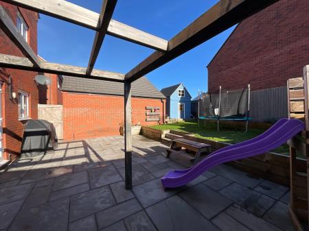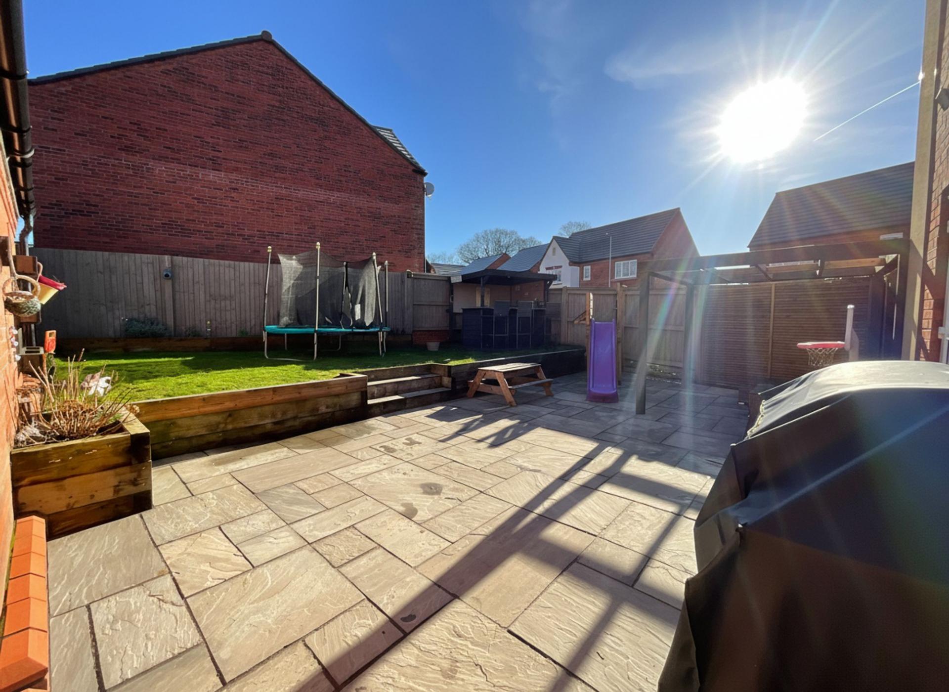 Continue outside to a landscaped, tiered rear garden where you will discover a generous patio seating space, a lush grass lawn that is surrounded by wooden sleepers, a fitted pergola and an already built corner bar. This space is ideal for entertaining friends and family, relaxing after a long day, or simply taking in the peace and quiet. The home also offers well-maintained front and side gardens, mature hedging, a tandem driveway with ample off-road parking, and a single garage for secure storage.