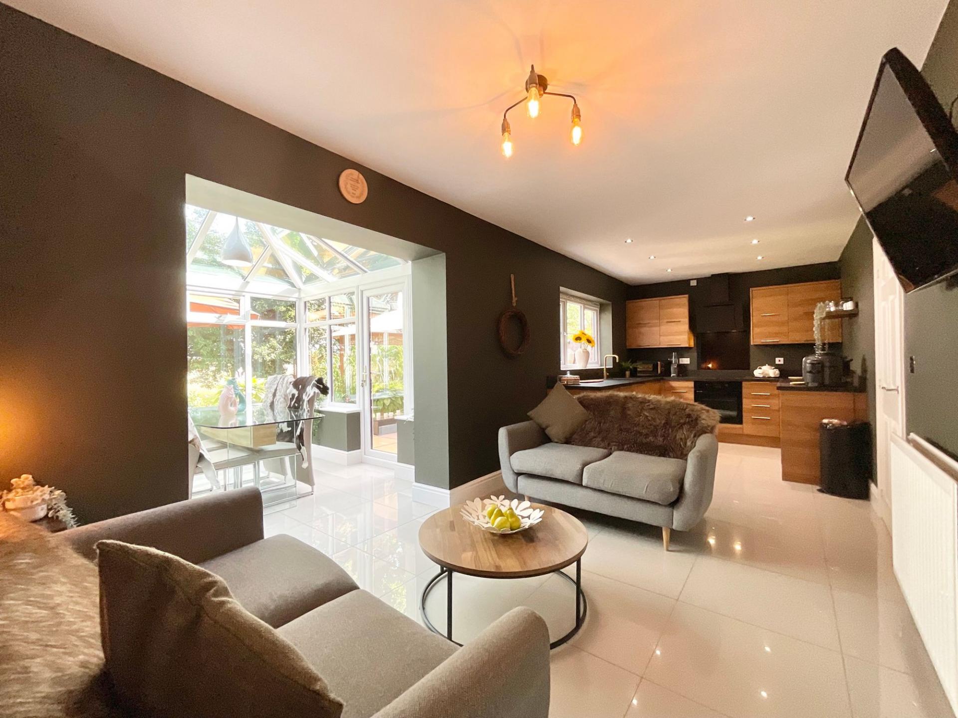 - Stylish open-plan kitchen, living and dining space flows into a stunning conservatory - perfectly designed for family life and entertaining.