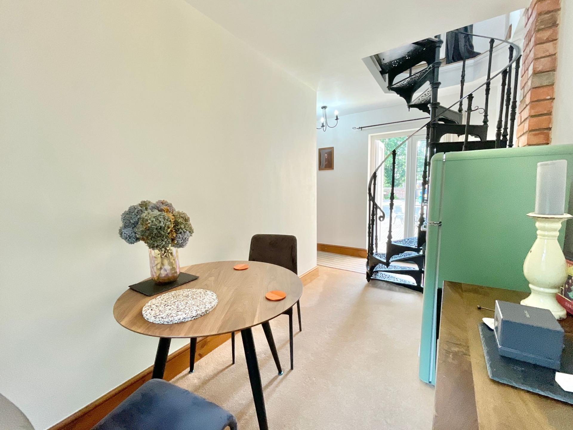 - A beautiful feature cast iron spiral staircase steals the show.