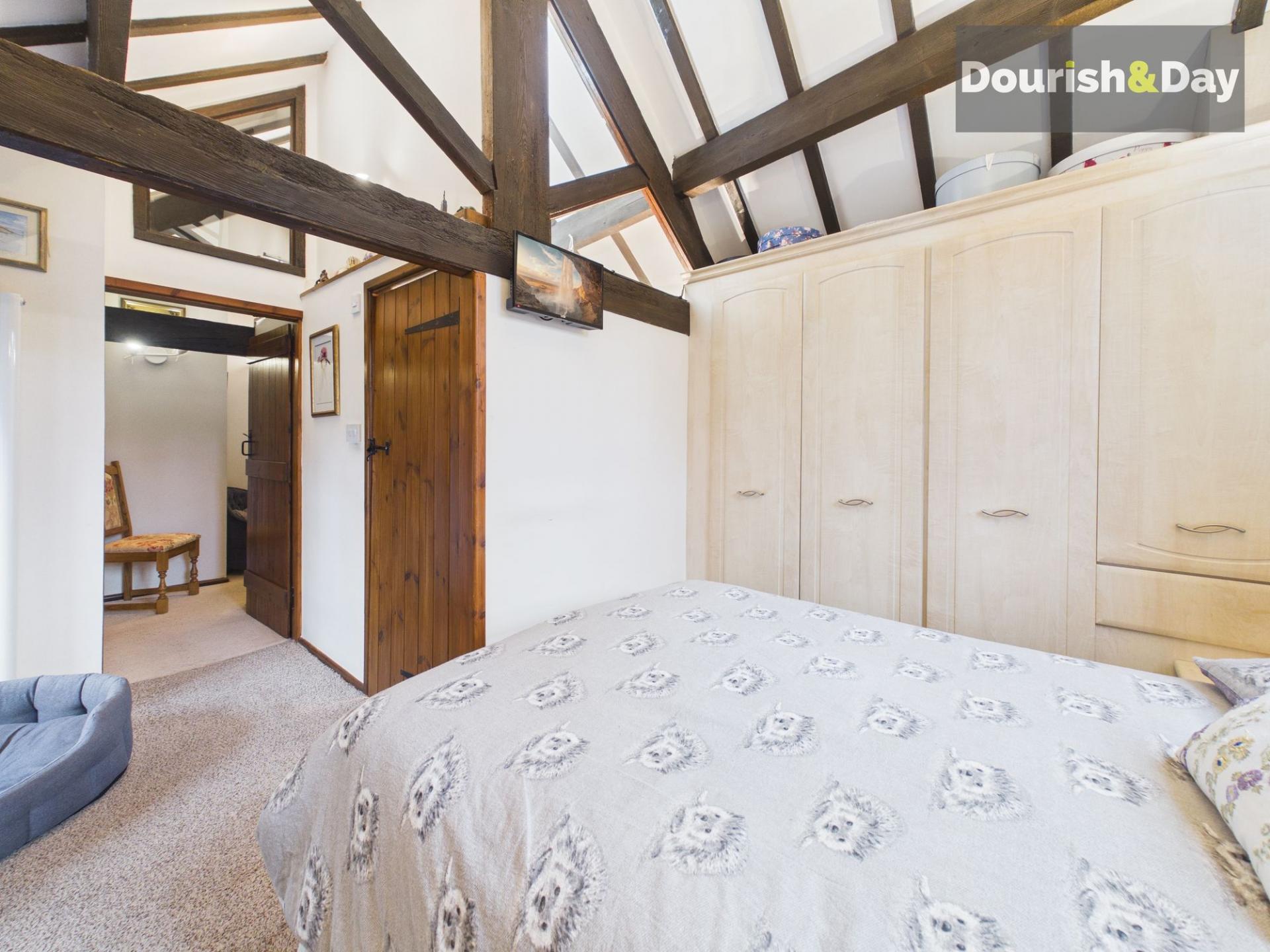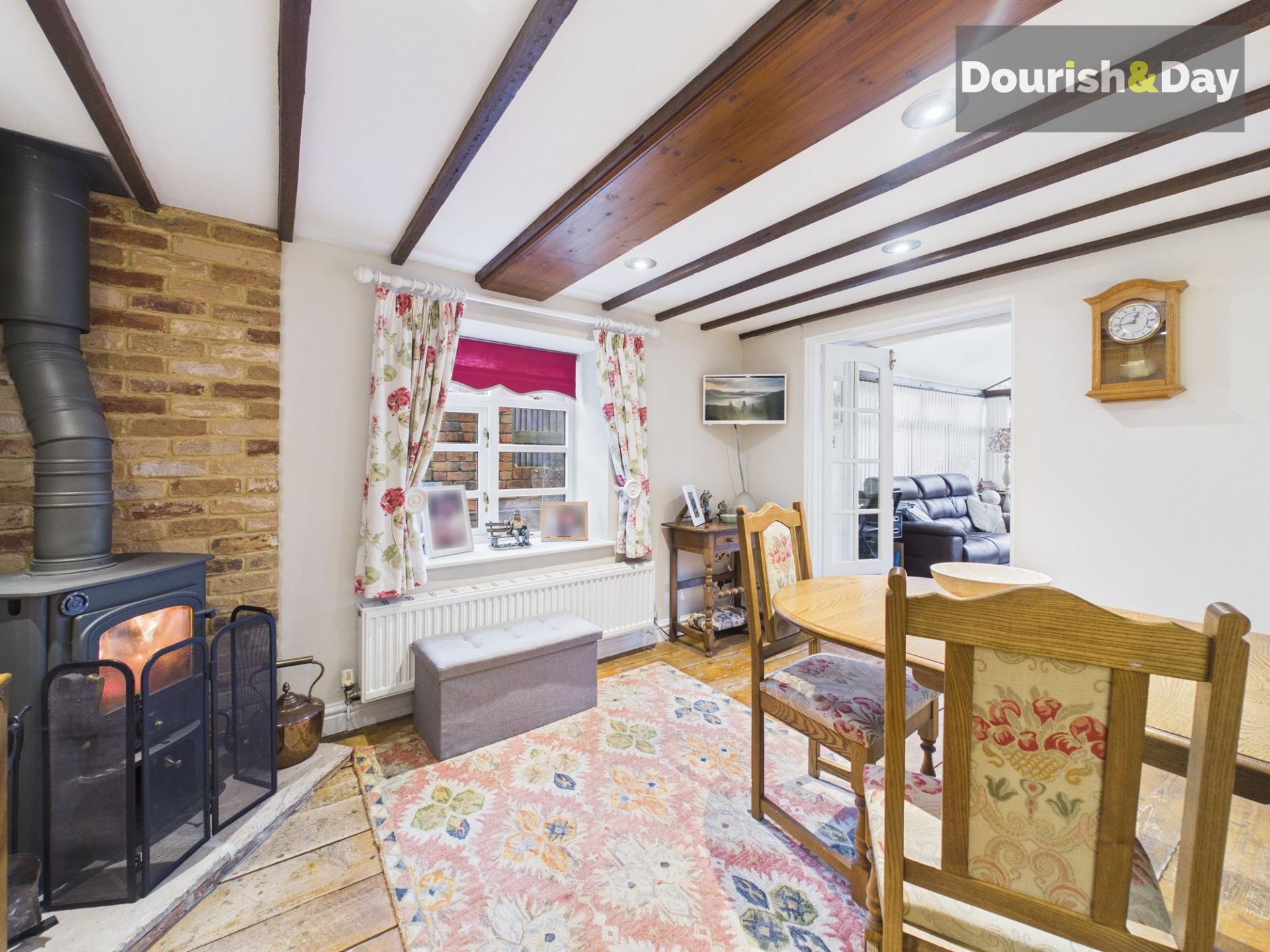 You are welcomed through a charming stable door into an inviting entrance hallway, complete with useful storage and a guest WC with further shoe storage. The well-designed kitchen features built-in appliances and offers both practicality and style, while the cosy living/dining room provides a wonderful space to relax and entertain, centred around a charming log burner that creates a warm and homely atmosphere. To the rear, patio doors lead to a well-insulated conservatory with a tiled and insulated roof overlooks the garden, providing a light-filled space to enjoy throughout the seasons. Upstairs, the landing benefits from a large storage cupboard with shelving and two further storage cupboards. The home offers two bedrooms, including a generous main double bedroom, along with a stylish contemporary shower room.
