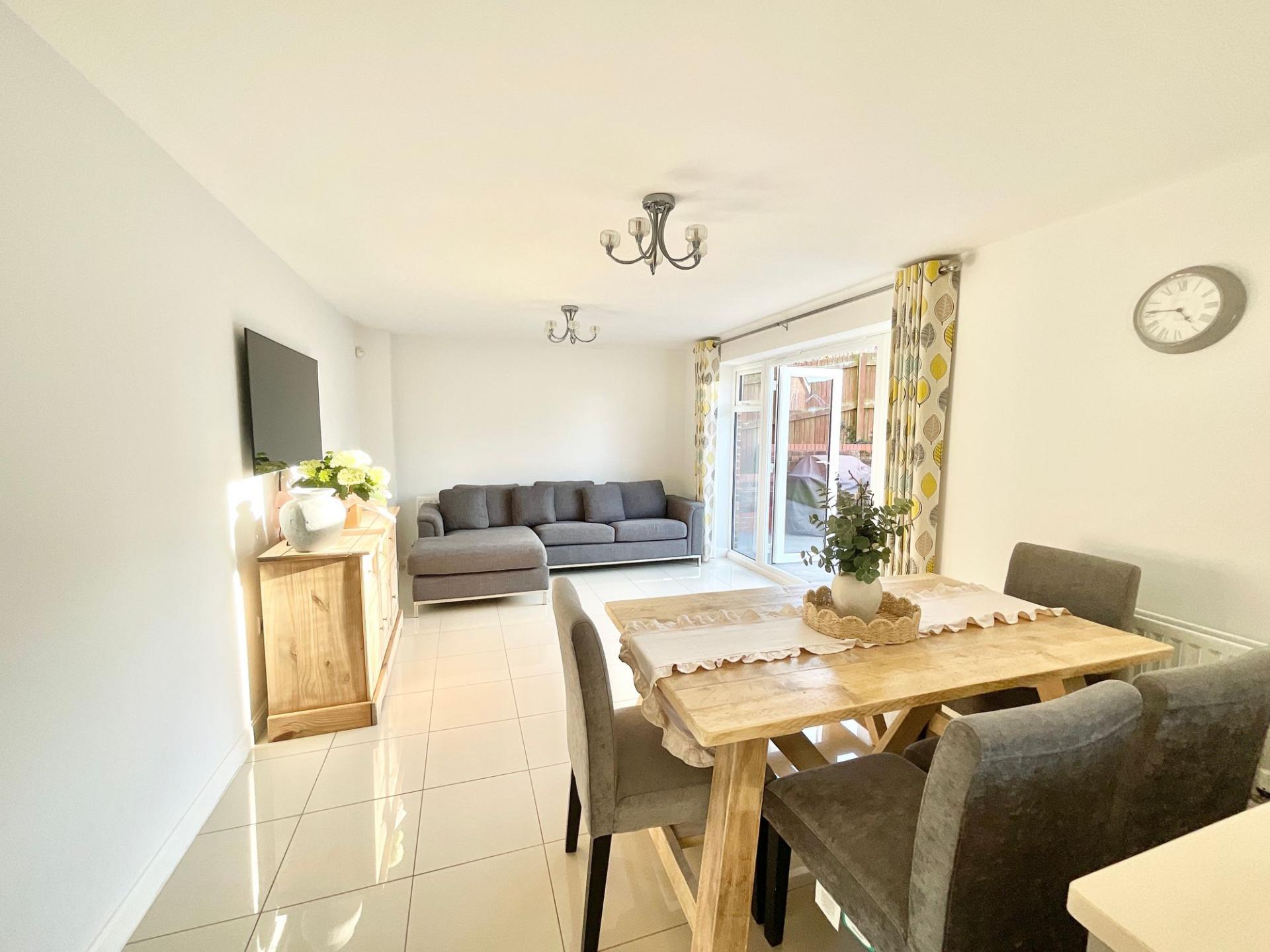 - The dining room offers great indoor-outdoor living with double doors leading to the private back garden, with plenty of patio space for outdoor furniture, ideal for the warmer periods of the year.