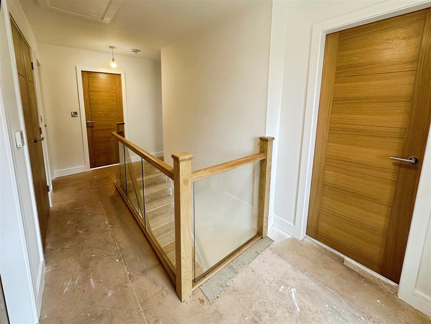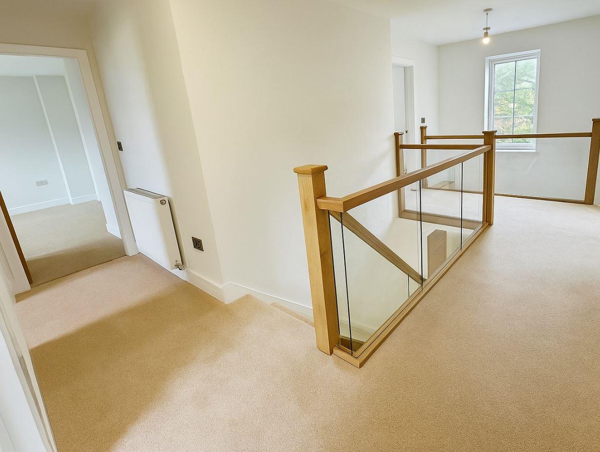 First Floor Landing - Feature oak and glass balustrades. Radiator. Airing cupboard off housing the hot water cylinder and providing ample storage. Two ceiling lights. uPVC window to the front aspect. Loft access. Doors leading into: -