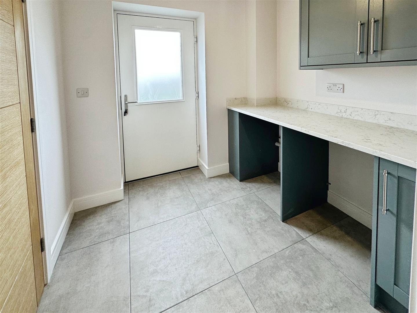 Utility Room - 2.26. 1.85 (7'4". 6'0") - Fitted with high quality 'Howdens' wall and base units with quartz worksurface over. Plumbing for automatic washing machine. Space for condensing tumble dryer. Tiled flooring with underfloor heating. Composite door to the side aspect. Ceiling light. Door leading into:-