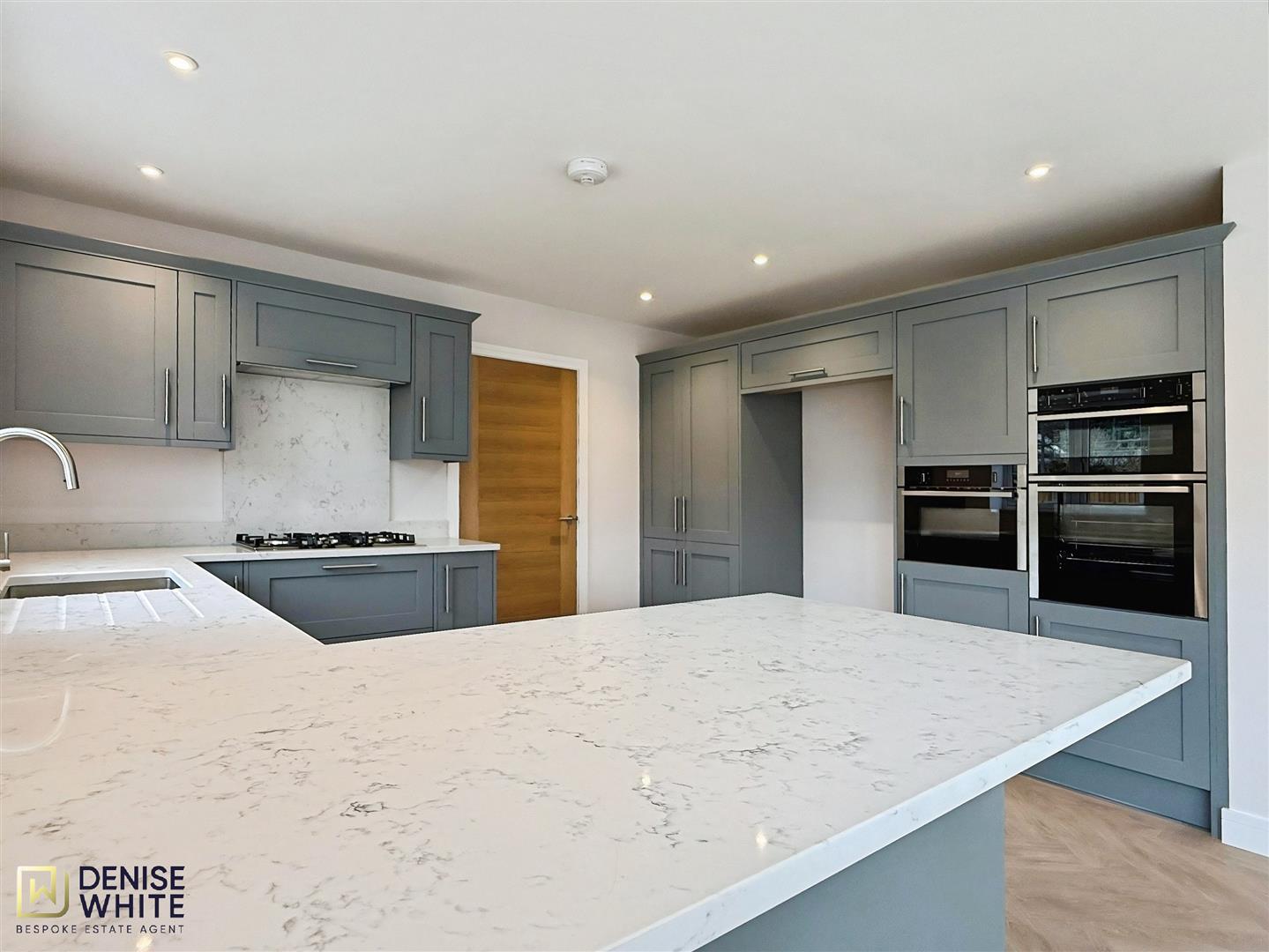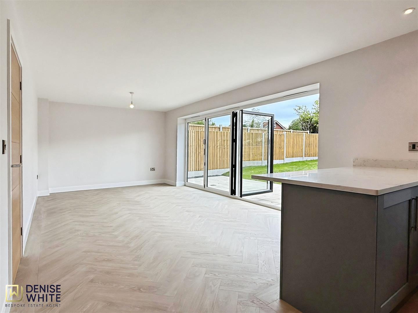 Dining Kitchen - 9.34 x 3.44 (30'7" x 11'3") - Fitted with a range of high quality 'Howdens' wall and base units with quartz work surfaces over incorporating an inset one and a half bowl stainless steel sink unit with mixer tap. Integrated 'Neff' appliances including a five ring gas hob with extract over, double electric oven and microwave. Space for American style fridge freezer. LVT herringbone flooring with underfloor heating. Bi-fold doors leading to the rear garden. uPVC window to the rear aspect. Ceiling spotlights. Door leading into:-