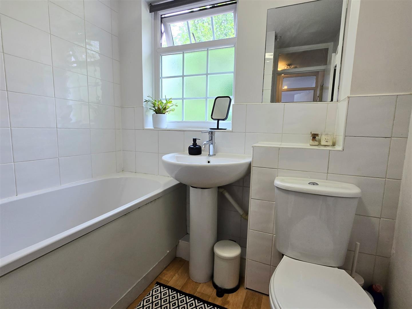 Composite front door with glazed insert. Electric radiator. Part glazed door to Living Room.