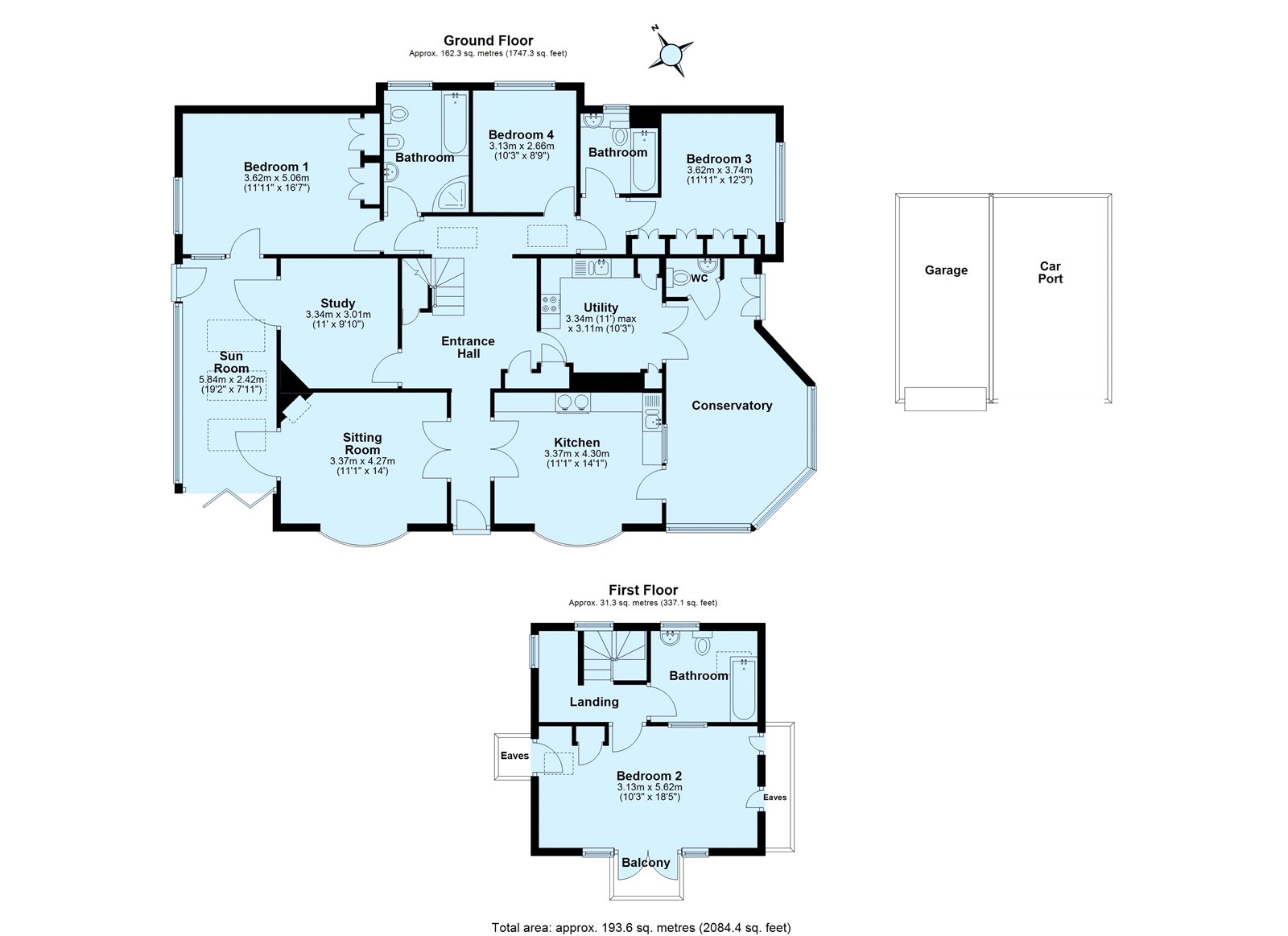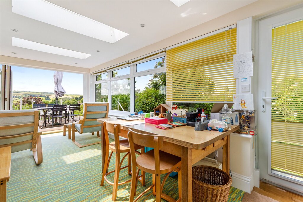 The house is entered via a generous hallway with access into the sitting room which enjoys a lovely bay window with southerly views with access into the sun room. On the other side of the hallway is the Kitchen / breakfast room with another bay window enjoying wonderful views. A conservatory leads off the Kitchen with a geust WC and provides access into the utility room. A study is also entered off the hallway and leads into a sun room. To the rear are three double bedrooms and two bathrooms. Upstairs is the principal bedroom with a balcony with superb views and a bathroom.