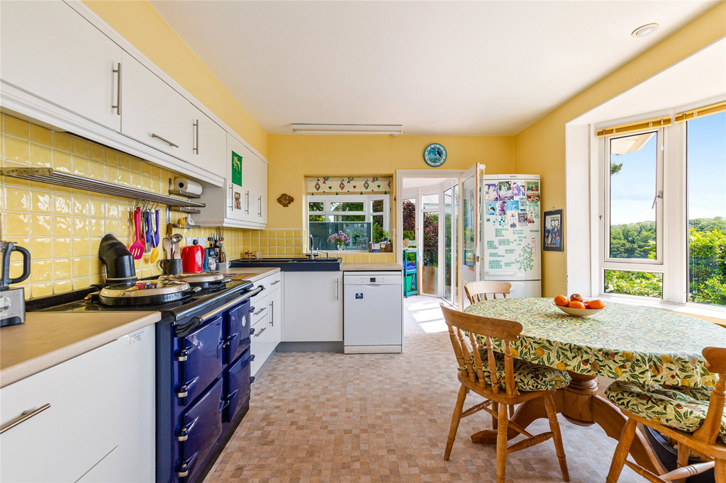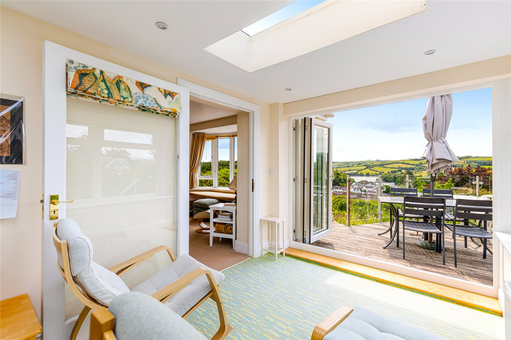 Sitting in an elevated position with a panoramic view over Stoke Gabriel to the River Dart and open countryside beyond is this hugely flexible chalet style bungalow which enjoys a lovely southerly aspect. Easily accessed via a private road with ample driveway parking and garage.