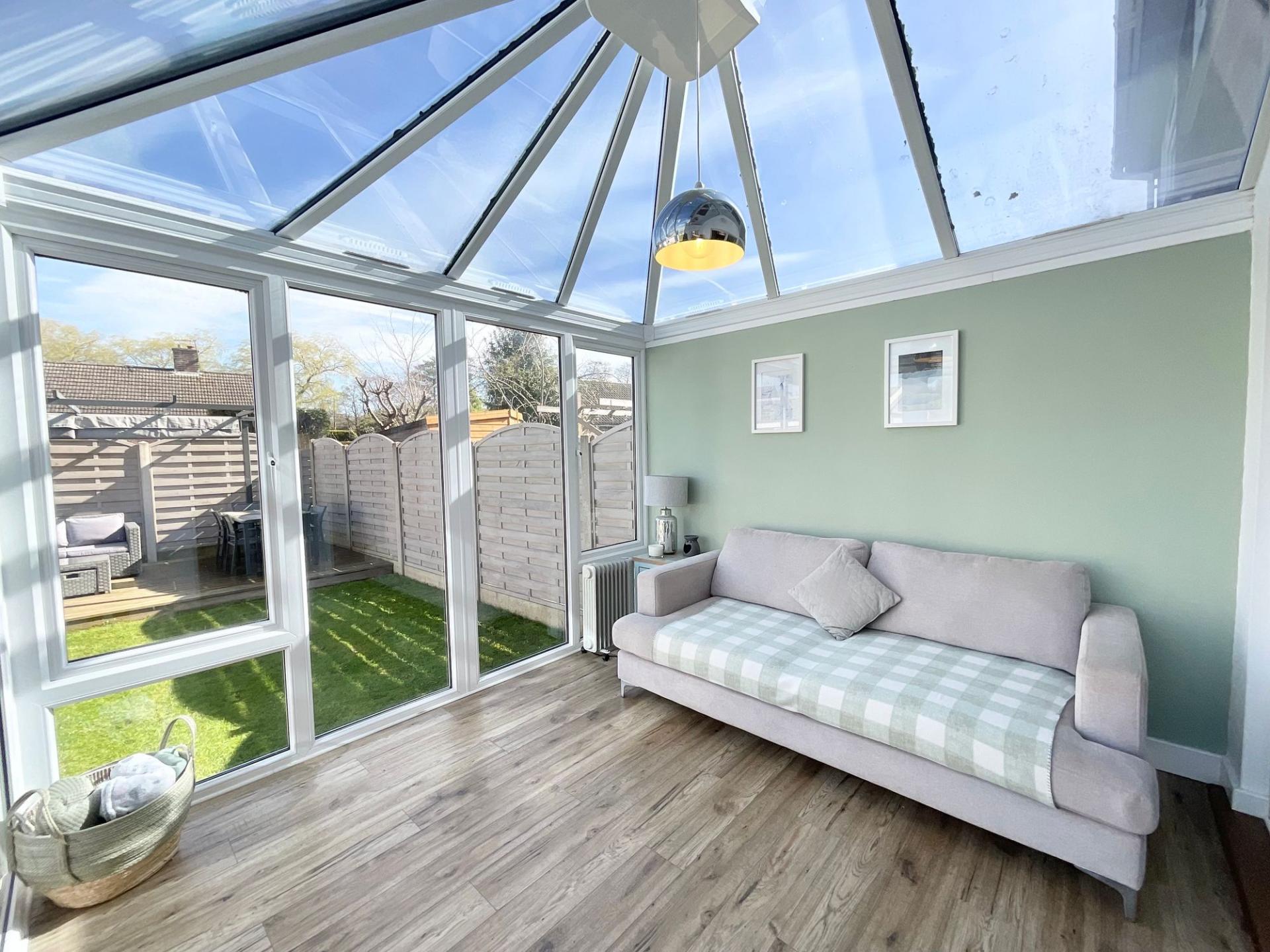 - Spacious open-plan lounge diner with parquet flooring, plus a bright conservatory overlooking the garden.