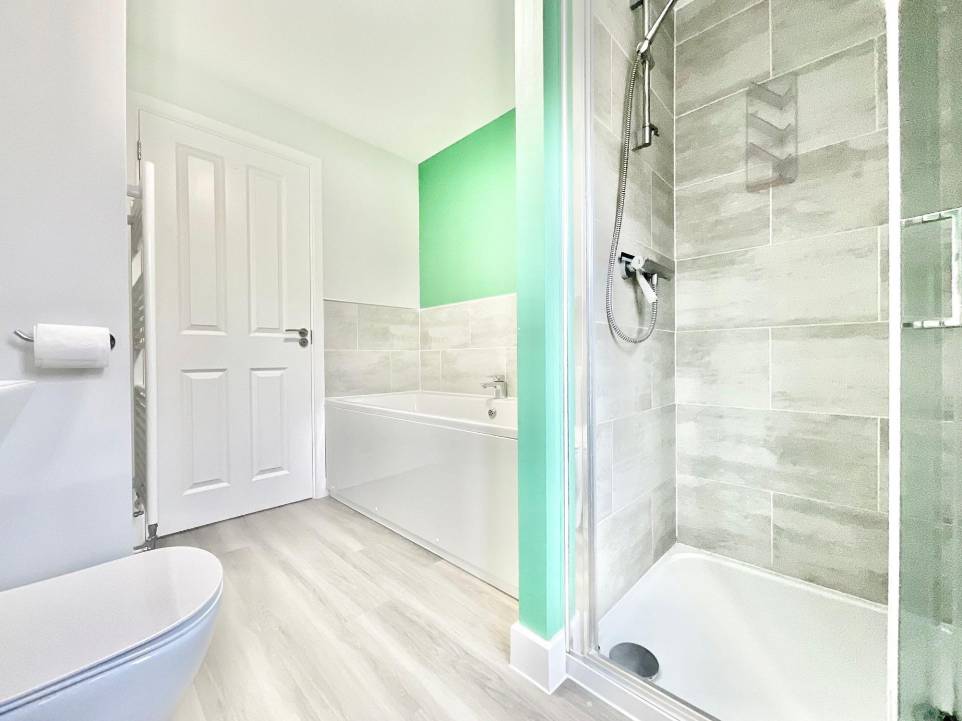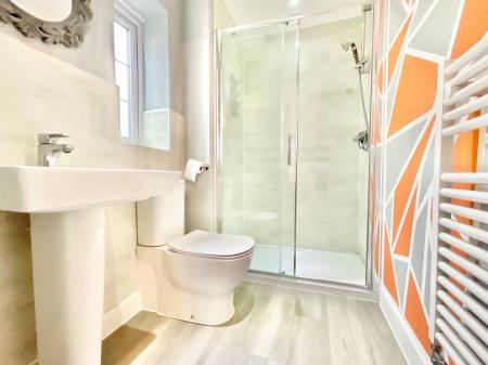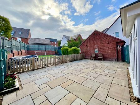 - Large rear garden complete with patio seating area, pebbled seating area, lush artificial lawn and a perfect play area for the little ones.