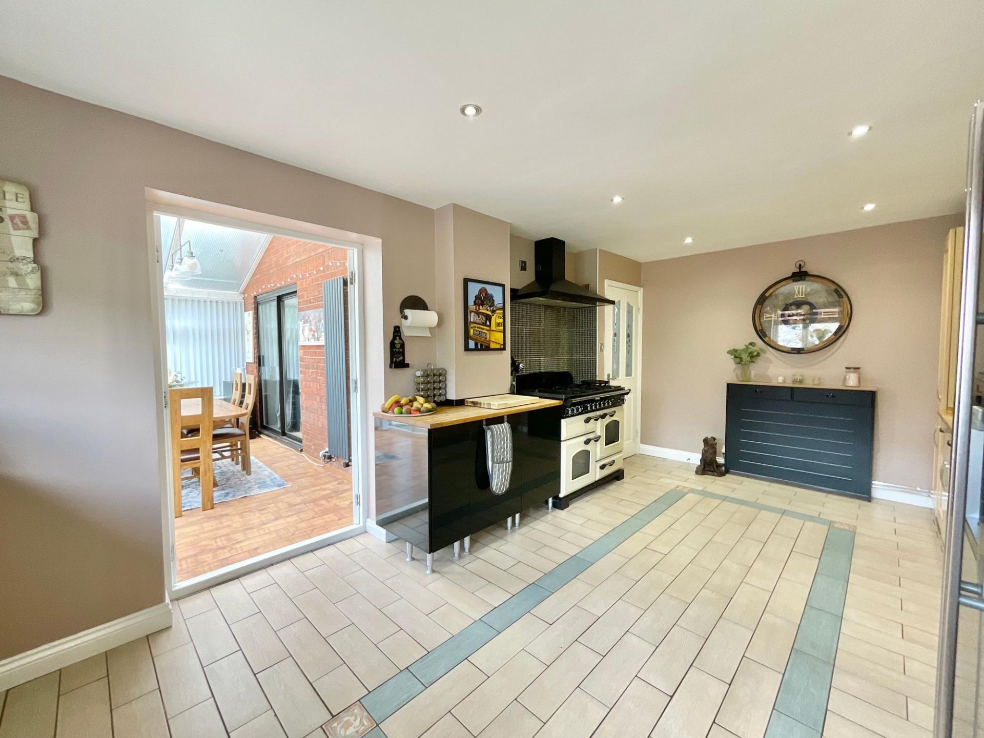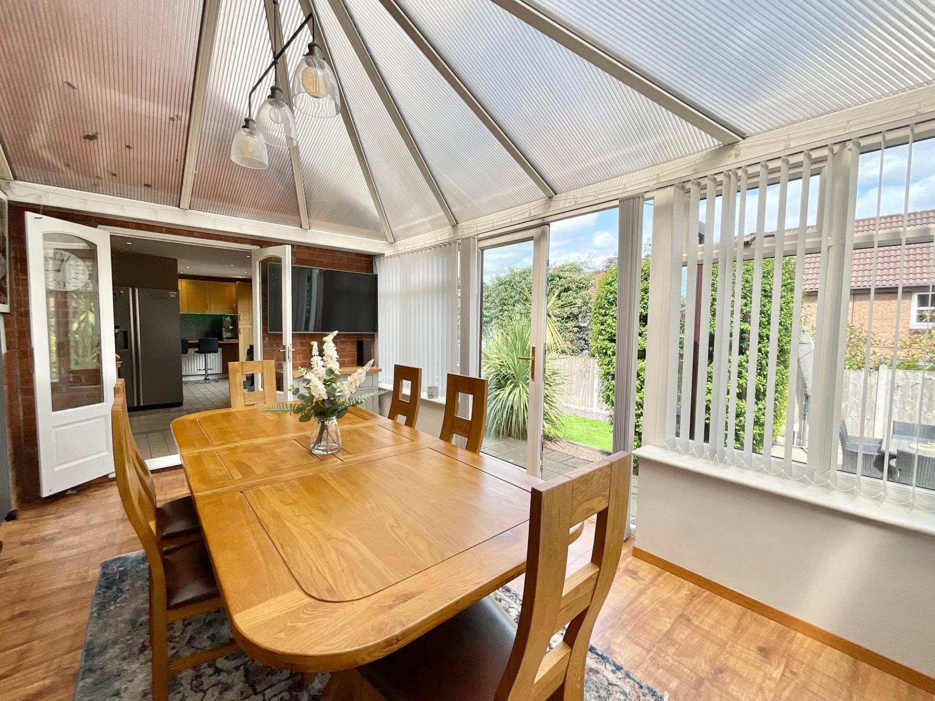 - Generous living spaces including an inviting living room with log burner, bright and airy conservatory, kitchen with adjoining utility, plus another versatile reception and W/C.