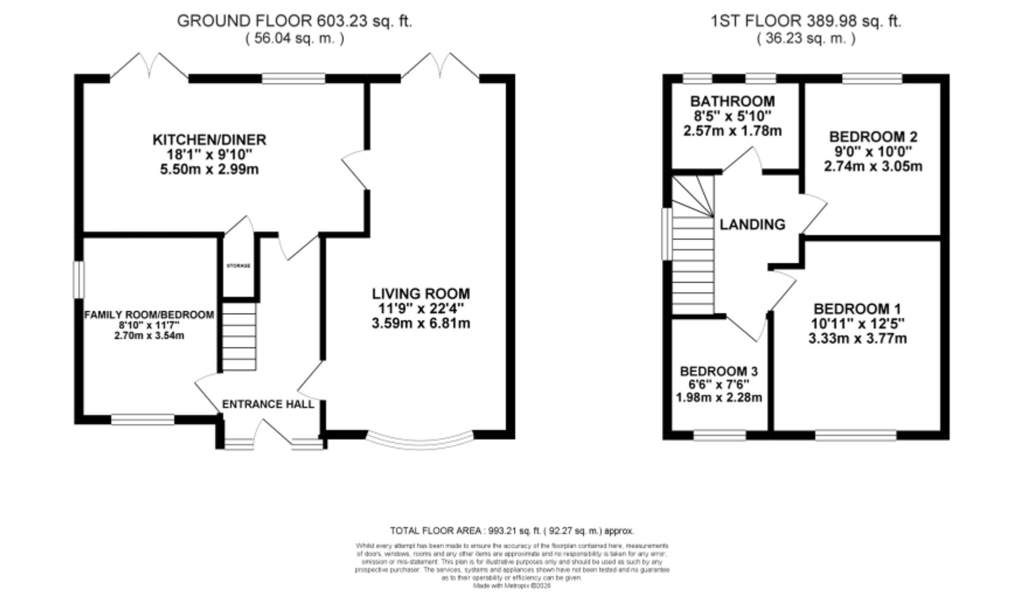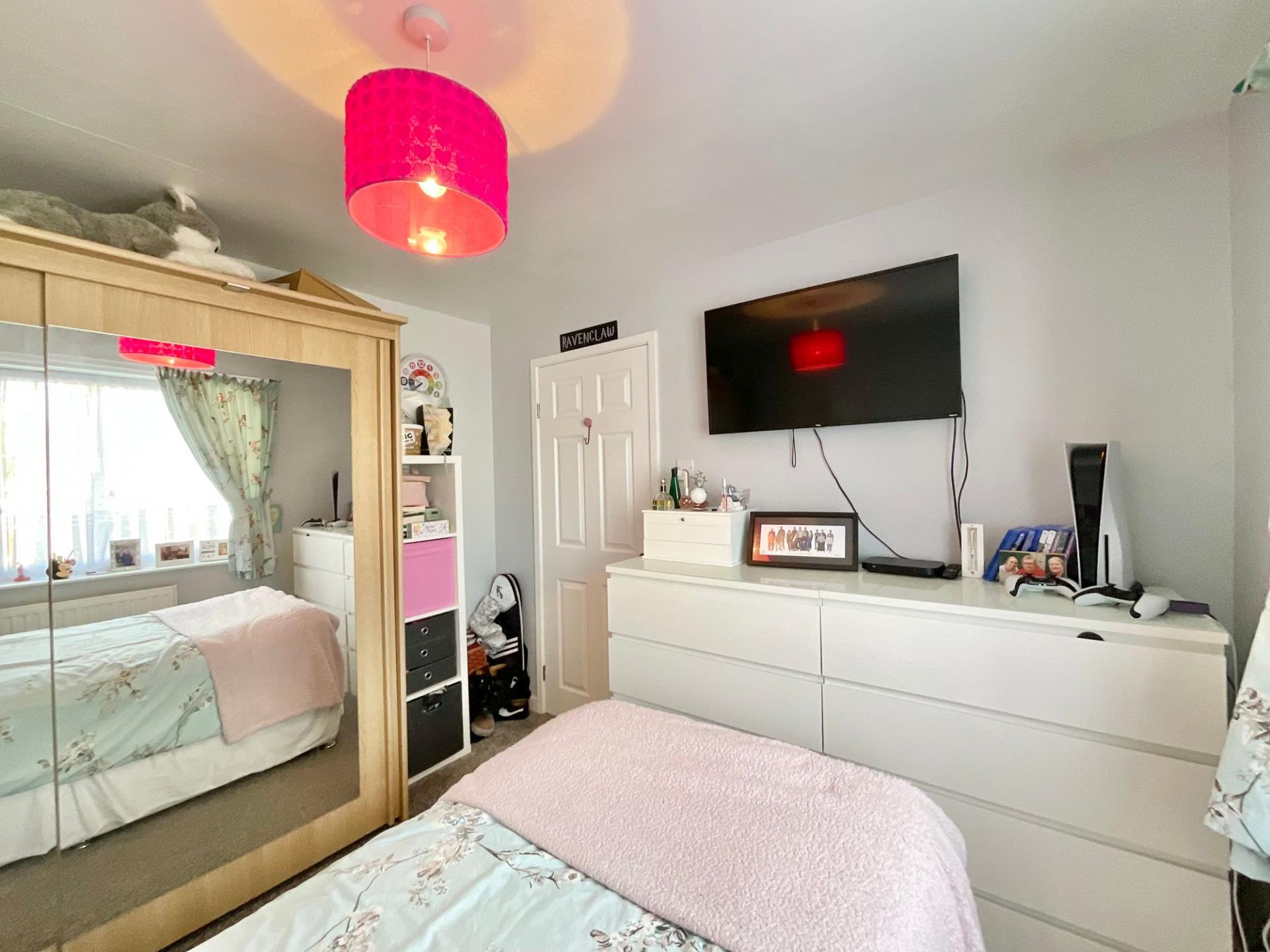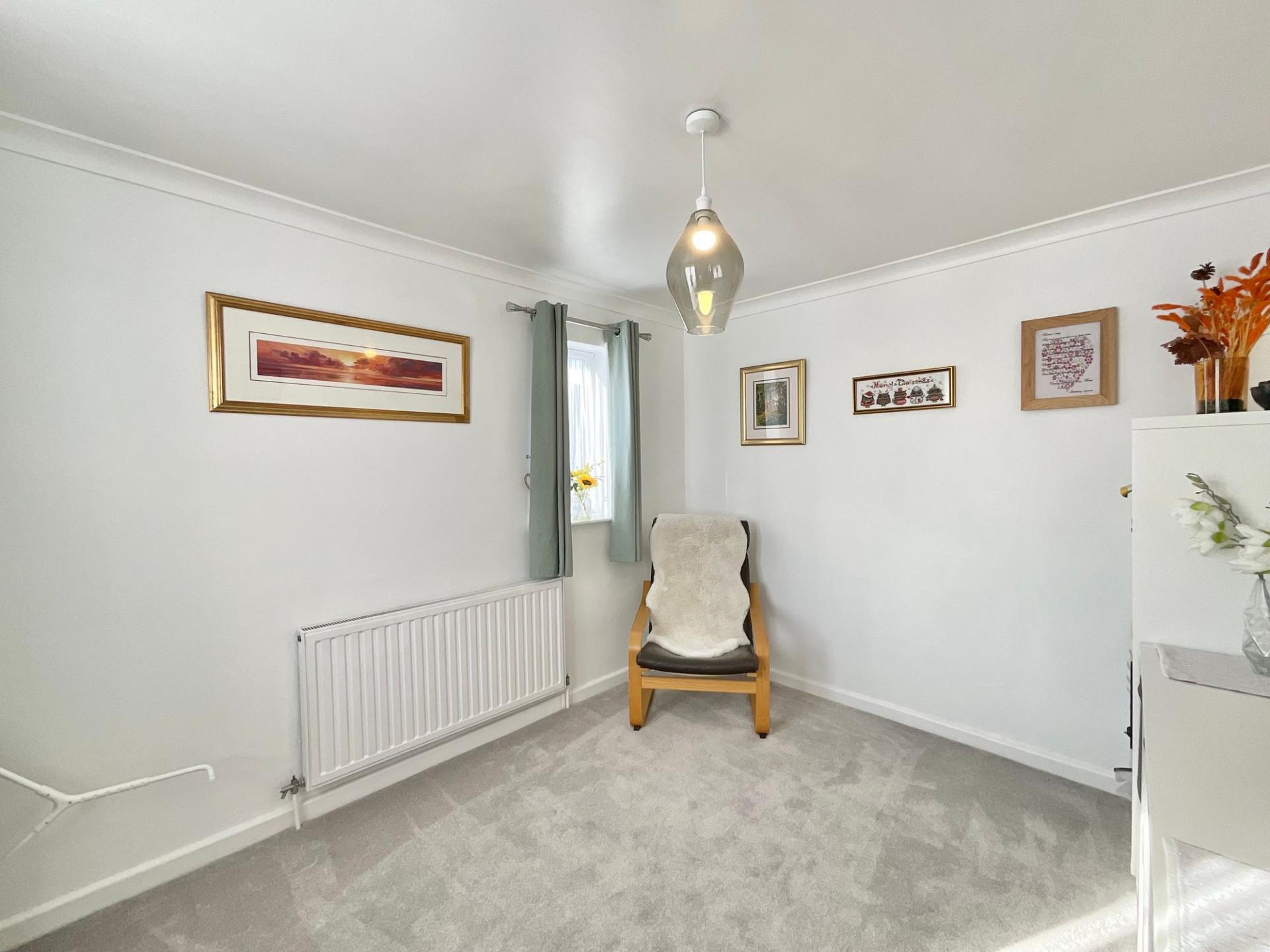 Step into a bright and welcoming entrance hall, guiding you directly into a spacious kitchen/diner complete with white shaker-style cabinetry, plenty of room for appliances and large glazed French doors leading to the garden. The living room offers a further set of glazed French doors to the garden, along with a warm feature fire surround and a bay window. Across the hall, you’ll discover a versatile family room/fourth bedroom, ready to adapt for whatever your needs may be.