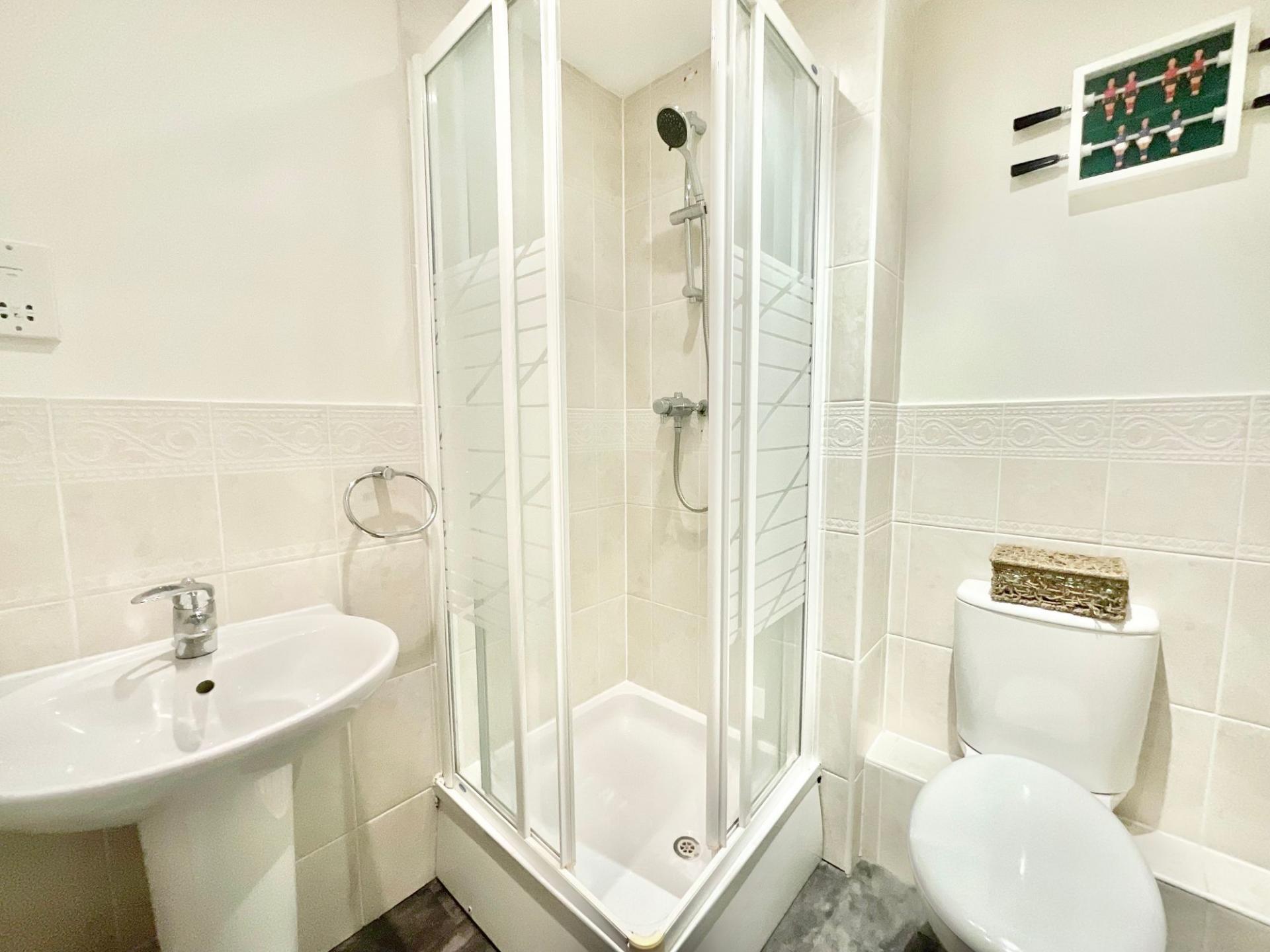• Downstairs W/C with toilet and pedestal wash hand basin, plus a family bathroom with panel bath and shower combination, W/C, and pedestal wash hand basin.