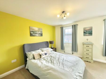 Climbing to the top of the bridge, the final chapter unfolds. The second floor offers space devoted to comfort and calm. The family bathroom features a sleek panel bath with shower combination, W/C, and pedestal wash hand basin, a bright and functional space for easy mornings. Two double bedrooms complete this level, each with built-in storage to keep everything neatly in place. One benefits from an ensuite shower room with W/C and pedestal wash hand basin, forming a peaceful haven tucked away above it all.